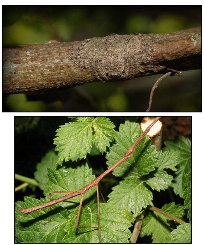 در تصویر زیر در نگاه اول تنها یک شاخه درخت خواهید دید، اما با کمی تأمل خواهید توانست تا عنکبوت مستتر شده بر روی تنه را پیدا کنید.