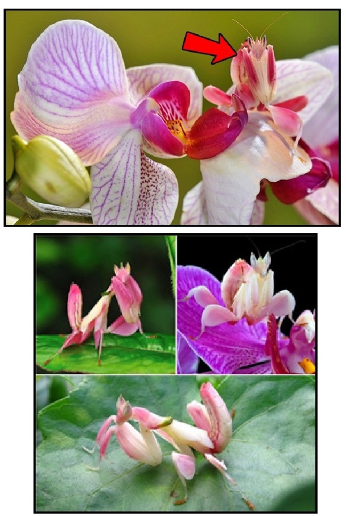 در حالی که برخی از حشرات از فن استتار خود برای پنهان شدن درمیان گلها استفاده می کنند، این مانتیس ارکیده نشین بخشی از ساختار گل ارکیده را تقلید می کند تا طعمه را جذب کند. چهارپای حرکتی این حشره شبیه به گلبرگ گل ارکیده است.