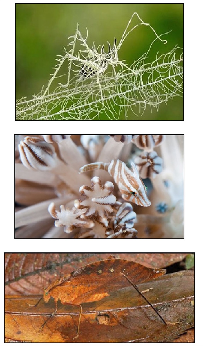 جاندار مستتر شده در هر عکس را پیدا کنید و سپس نوع استتار آن را مشخص کنید.