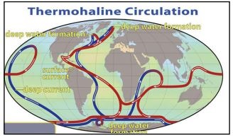 یک «کمربند جهانی حامل» در طی فرآیندی که گردش دماشوری نامیده می شود، جابه جا می کند. این عمل که باعث اختلاف در گرما و شوری محلی تغذیه می شود، الگوهای آب و هوایی در دریا و خشکی را به وجود می آورد.