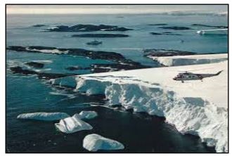 گرم شدن آب در زیر قطب جنوب، ابتدا باعث جدا شدن قطعات یخ و حرکت آن ها به سمت خشکی ها می شود و سپس هوای گرم، آن ها را آب می کند.