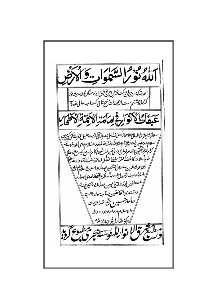 يادداشت:این کتاب برگزیده کتاب "عبقات الانوار" تالیف میرحامدحسین هندی بوده که خود نیز ردیه ای بر کتاب "التحفه الاثنی عشریه" تالیف عبدالعزیزبن احمد دهلوی است.