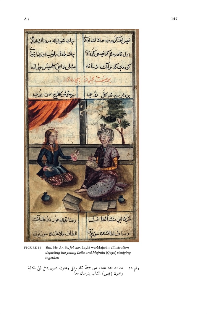 15 - Yah. Ms. Ar. 80, fol. 22r. Layla wa-Majnun. Illustration depicting the young Leila and Majnun (Qays) studying together 147
