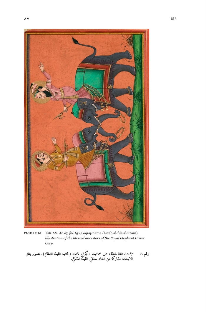 16 - Yah. Ms. Ar. 87, fol. 63v. Gajraj-nāma (Kitāb al-fila al-'izām). Illustration of the blessed ancestors of the Royal Elephant Driver Corp 155