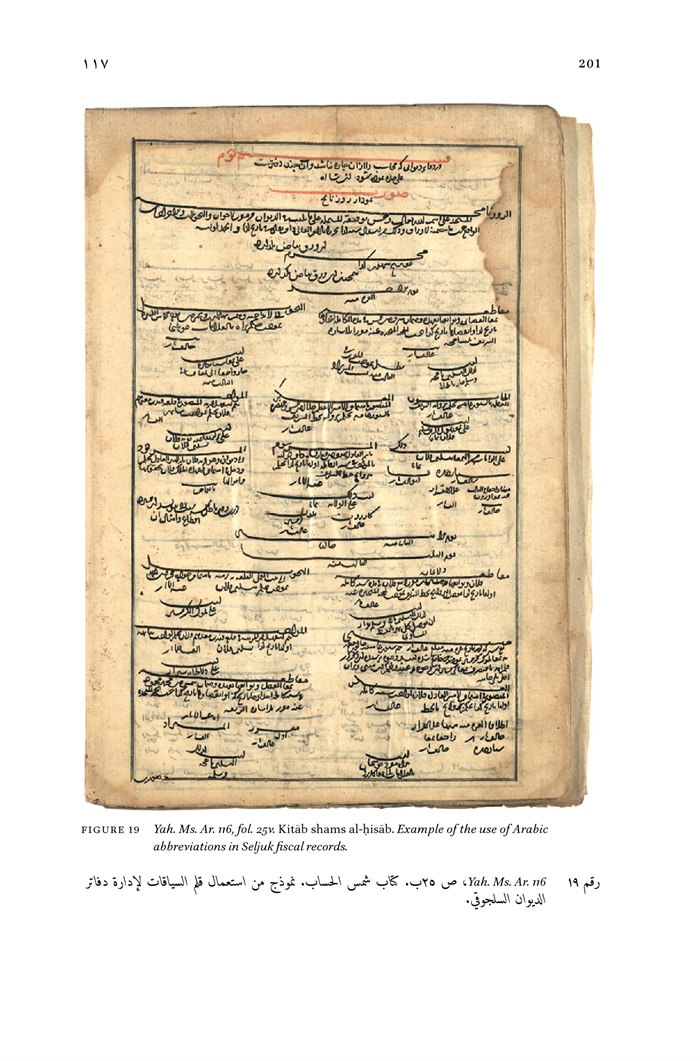 19 - Yah. Ms. Ar. 116, fol. 25v. Kitāb shams al-hisab. Example of the use of Arabic abbreviations in Seljuk fiscal records 201