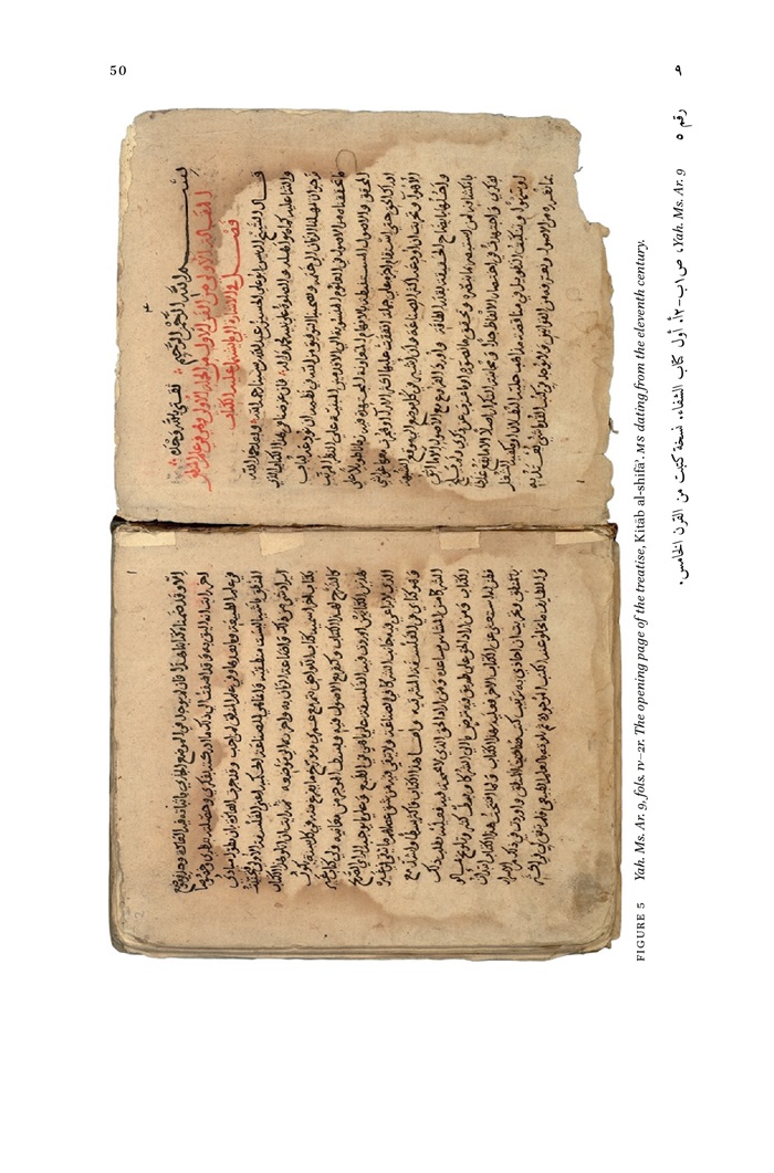 5 - Yah. Ms. Ar. 9, fols. 1V-2r. The opening page of the treatise, Kitāb al-shifā'. Ms dating from the eleventh century 50