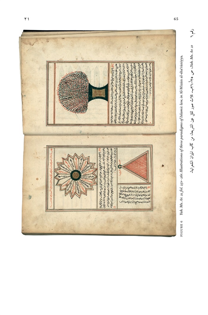 6 - Yah. Ms. Ar. 21, fol. 25v-26r. Illustrations of three paradigms of Islamic law, in Al-Mīzān al-sha'rāniyya 65