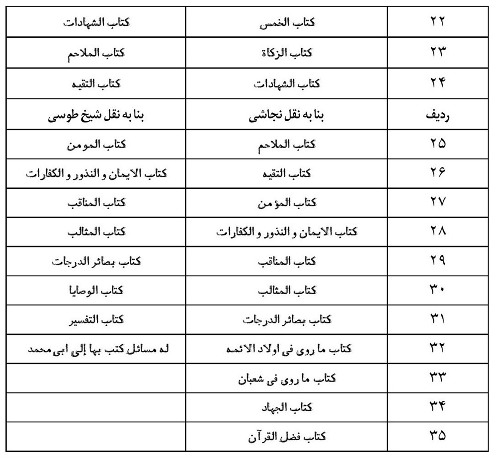 مقایسۀ نقل رجال نجاشی و فهرست طوسی.......... 322