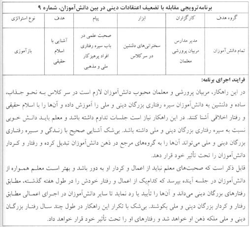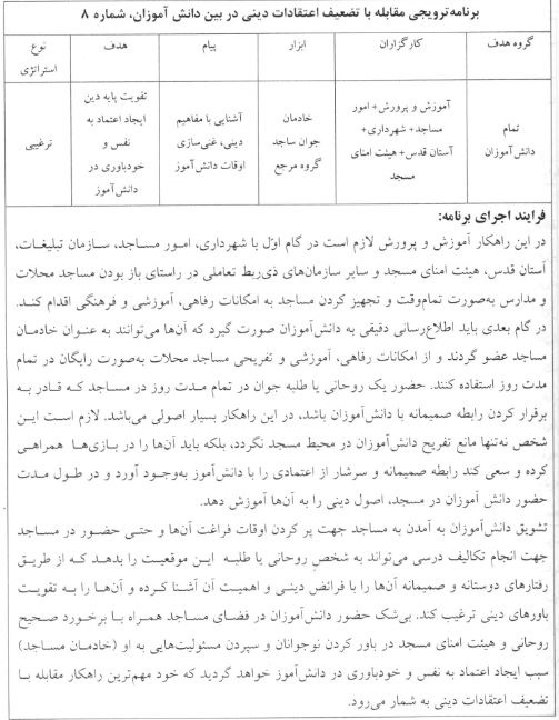 شناسایی روش های روزآمد امر به معروف و نهی از منکر برای مقابله با تضعیف اعتقادات و باورهای دینی در بین دانش آموزان شهر مشهد/ احمد رمضانی فرخد - دکتر محمود مرویان حسینی...300