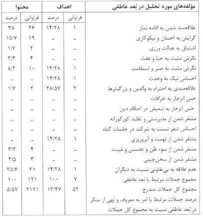 میزان توجه به امر به معروف و نهی از منکر در برنامه درسی «پیام های آسمانی» اول راهنمایی عالیه ایزدی...71