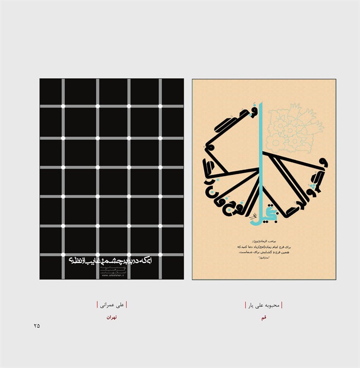 جشنواره پوستر انتظار (عج) ، میلاد حضرت رسول اکرم (ص ) ، روز جهانی گرافیک، اجتماع و حریم خانواده و یادواره 8 سال دفاع مقدس نمود که مجموعه حاضر حاصل این فراخوانها می باشد.