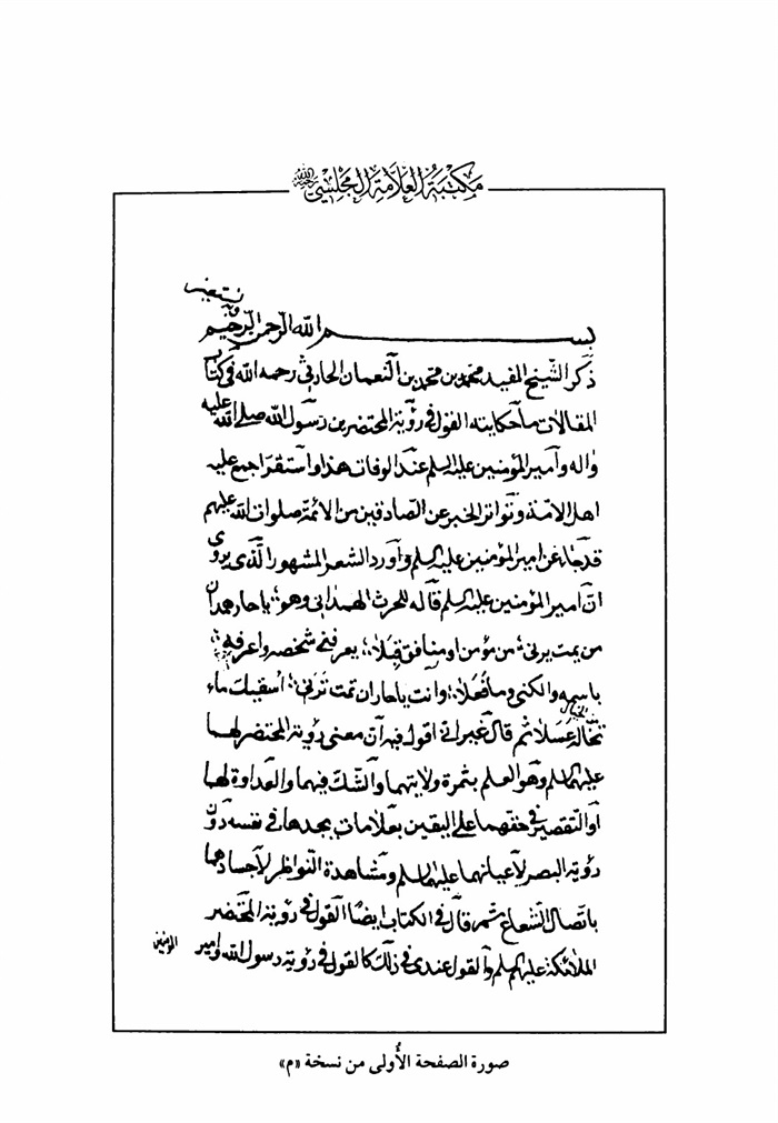 تأليف : الشيخ المفيد أبي عبد الله محمّد بن محمّد بن النعمان العكبري البغدادي (413ه).