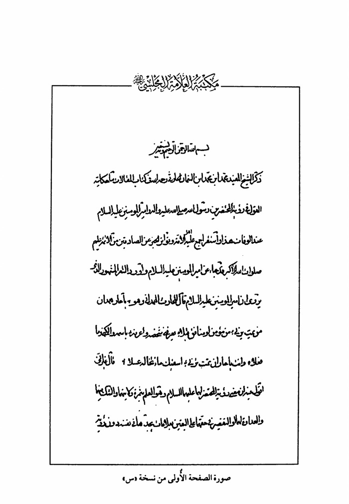 منشورات : مكتبة العلّامة المجلسي رحمه الله