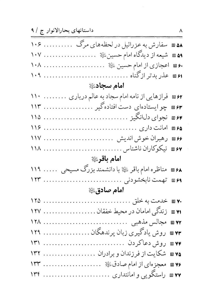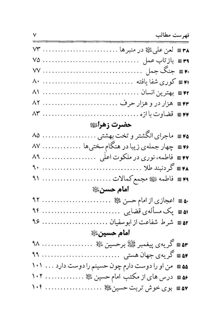 بخش نخست: به داستانها و روایت های مربوط به چهارده معصوم علیهم السلام اختصاص دارد.