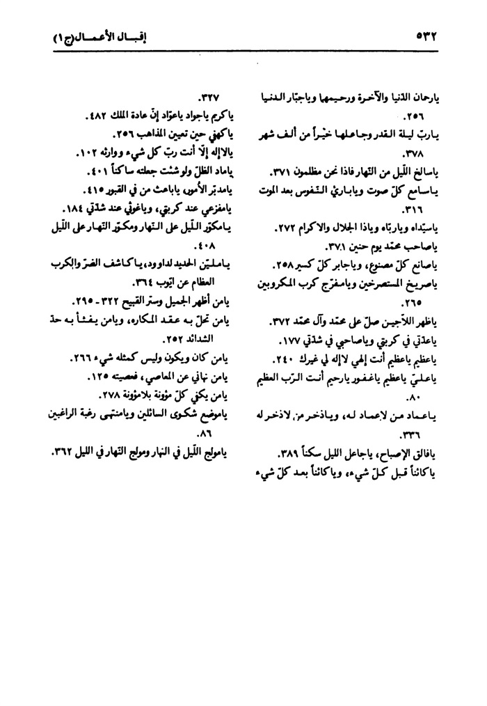 سَيِّدِي سَيِّدِي ، كَمْ مِنْ فَقِيرٍ قَدْ أَغْنَيْتَ ، فَاجْعَلْ فَقْرِي فِيما أَغْنَيْتَ ، سَيِّدِي سَيِّدِي ، ارْحَمْ دَعْوَتِي فِي الدَّاعِينَ ، سَيِّدِي وَإِلهِي أَسَأْتُ وَظَلَمْتُ وَعَمِلْتُ سُوءً ، وَاعْتَرَفْتُ بِذَنْبِي ، وَبِئْسَ ما عَمِلْتُ ، فَاغْفِرْ لِي يا مَوْلايَ ، أَيْ كَرِيمُ أَيْ عَزِيزُ أَيْ جَمِيلُ. (1) فإذا فرغت وانصرفت رفعت يديك ، ثمّ حمدت ربك ، ثم تقول ما تقدّم عليه ، وسلّمت على النبي صلى اللّه عليه وآله وسلم وحمدت اللّه تبارك وتعالى والحمد لله ربّ العالمين.