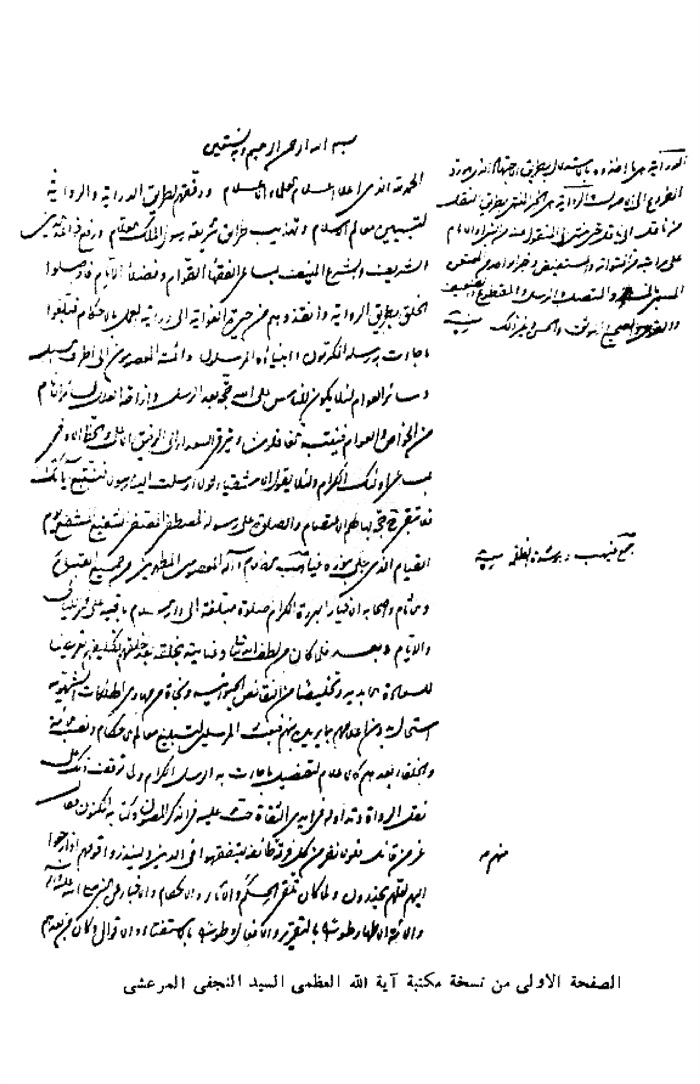 يادداشت : "رساله الردود والنقود علی الکتاب و مولفه والاحوبه الشافیه الکافیه " عنهما، بقلم شهاب الدین الحسینی المرعشی النجفی " ج . 1: ص . 15 - 1