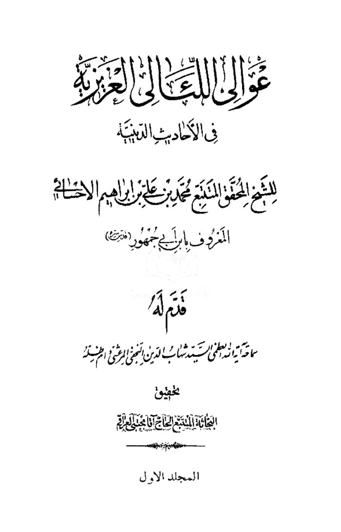 عنوان و نام پديدآور : عوالی اللئالی الغریزیه فی الاحادیث الدینیه / محمدبن علی بن ابراهیم الاحسائی المعروف بابن ابی جمهور؛ قدم له شهاب الدین النجفی المرعشی : تحقیق البحاثه المتتبع ... مجتبی العراقی .