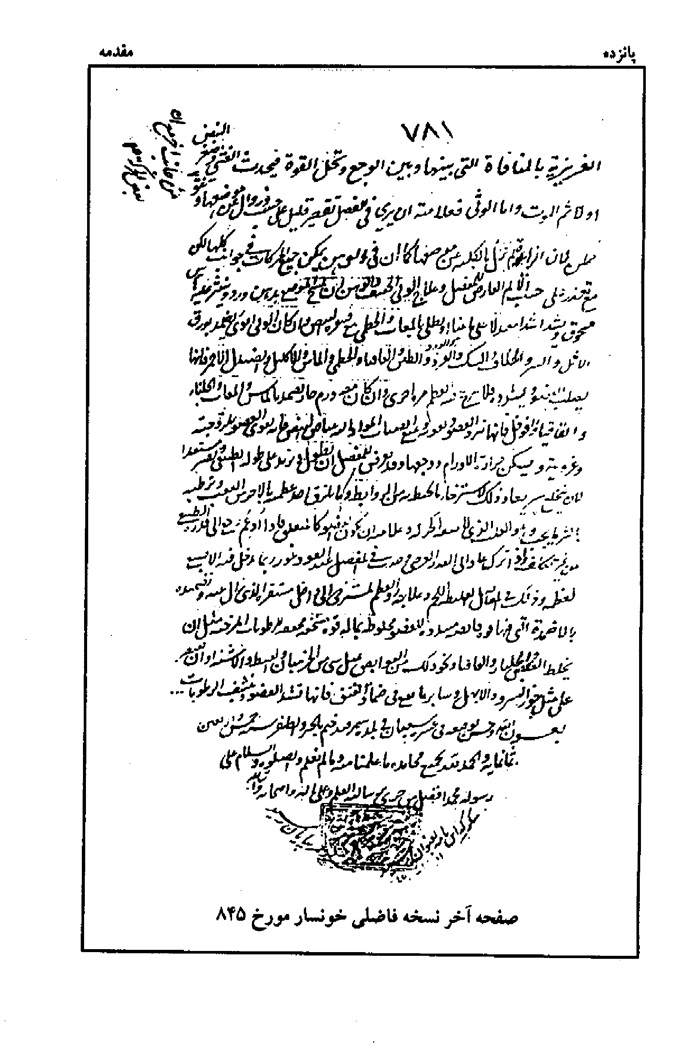 صفحه آخر نسخه فاضلى خونسار مورخ 845