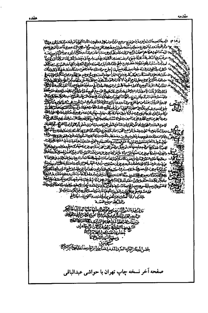 صفحه آخر نسخه چاپ تهران با حواشى عبد الباقى