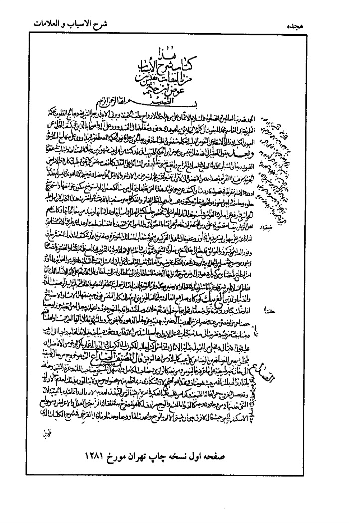 صفحه اول نسخه چاپ تهران مورخ 1281