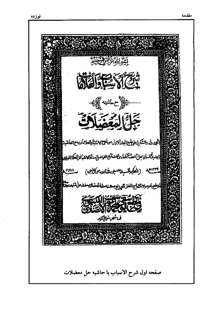 يك نسخه از كتاب «شرح الاسباب و العلامات» كه در هندوستان چاپ شده به نام «حل المعضلات» معروف است كه توسط «مولوى حكيم سيد حسين» از حكماى آن ديار از حواشى و شروح اين كتاب جمع آورى شده و نكاتى هم از استادش بر آن افزوده است. اين كتاب در سال 1339 هجرى قمرى در لكنهو چاپ شده است و محشى در مقدمه كتاب خود متذكر شده كه فوايد زيادى از كتب گوناگونى در اين مجموعه گردآورده است كه برخى از آنها به اين شرح مى باشند: