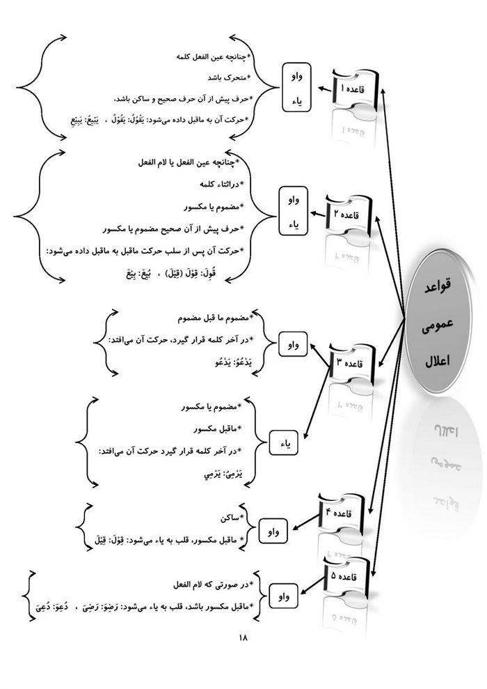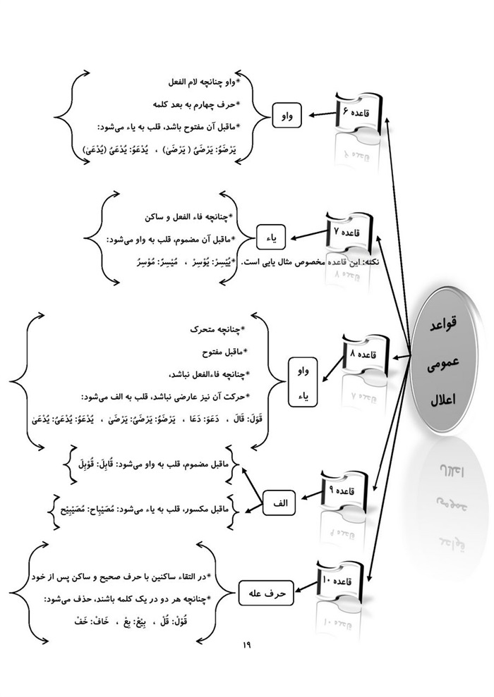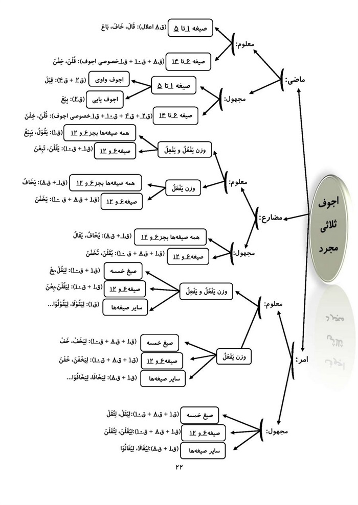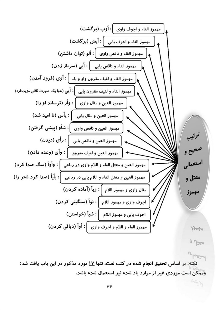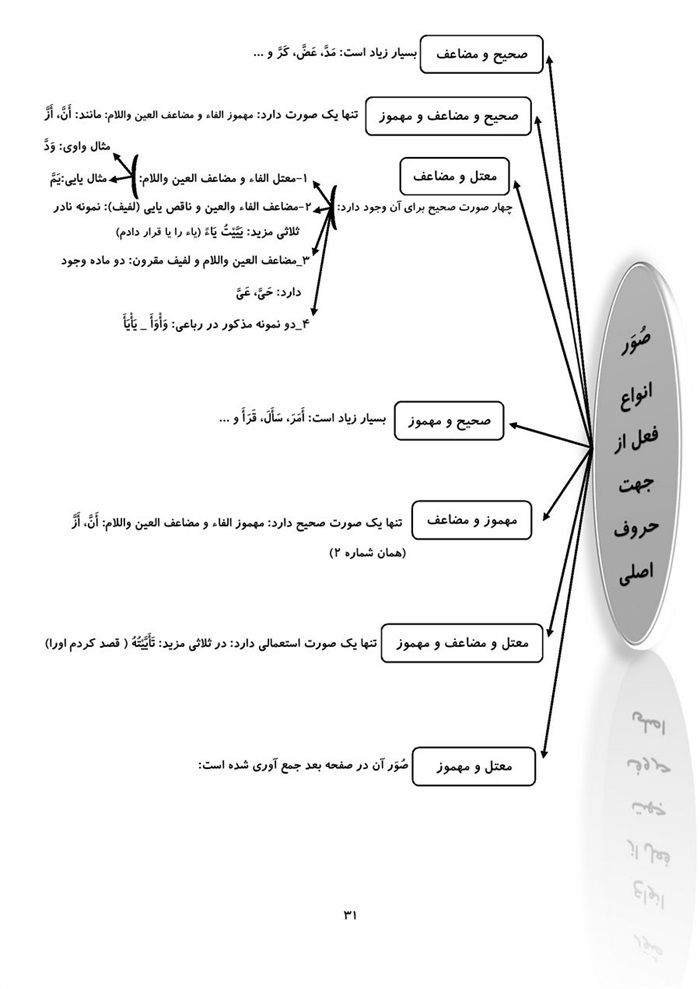 9- در انتهای جزوة شمارة1 فهرستی از انواع فعل ها از جهت حروف اصلی اعم از معتل و مضاعف، معتل و مهموز و ... آورده شده است.