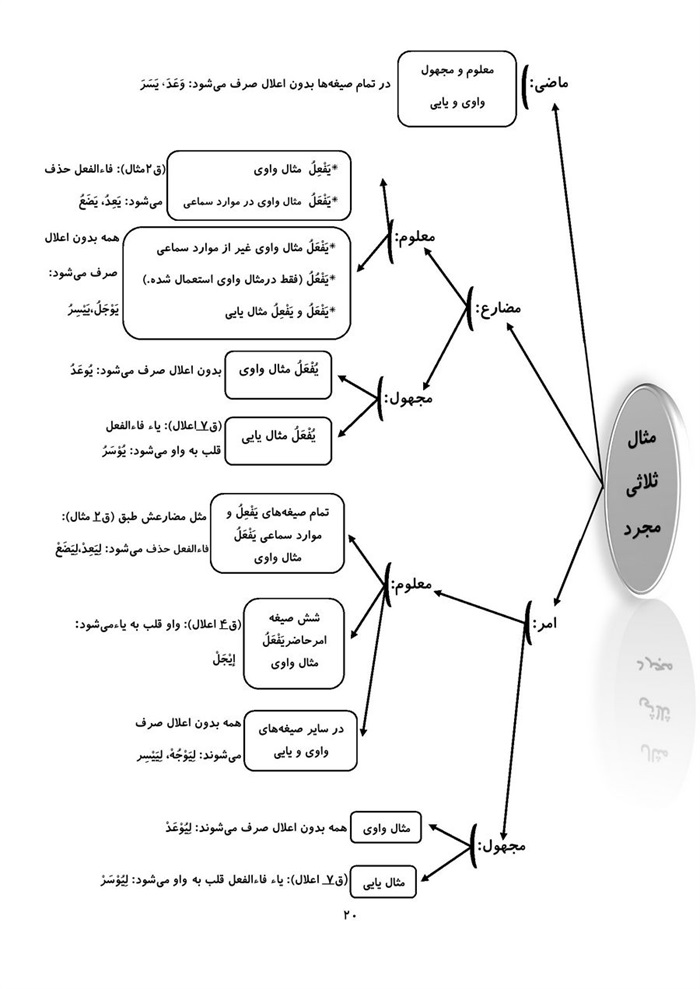 3- تقسیم معتل به مثال (واوی و یایی)، اجوف (واوی و یایی)، ناقص (واوی و یایی)،