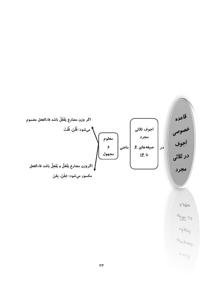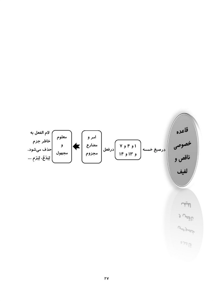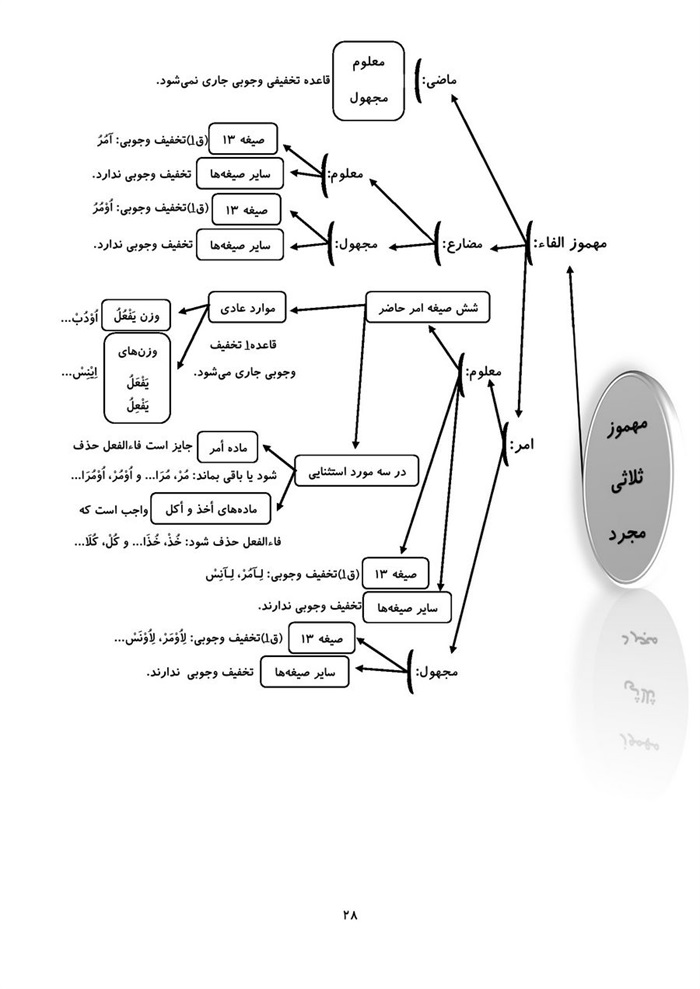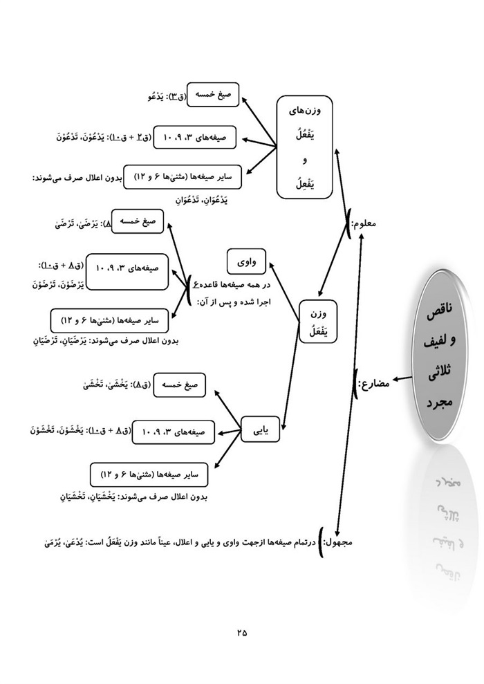 11- در جزوة شمارة2 اولین صفحة از هر فعل به غیر از مضاعف شامل: (ماضی، مضارع و امر)، صفحة دوم: (ماضی منفی، مضارع منفی، منصوب و مجزوم) و صفحة سوم: شامل (نون تأکید) می باشد.