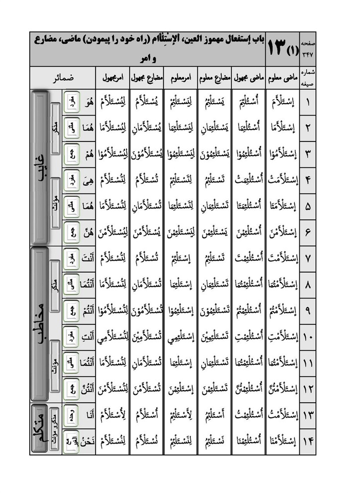 عنوان قراردادی:تصریف الأفعال العربیه لطلاب العلوم الإسلامیة
