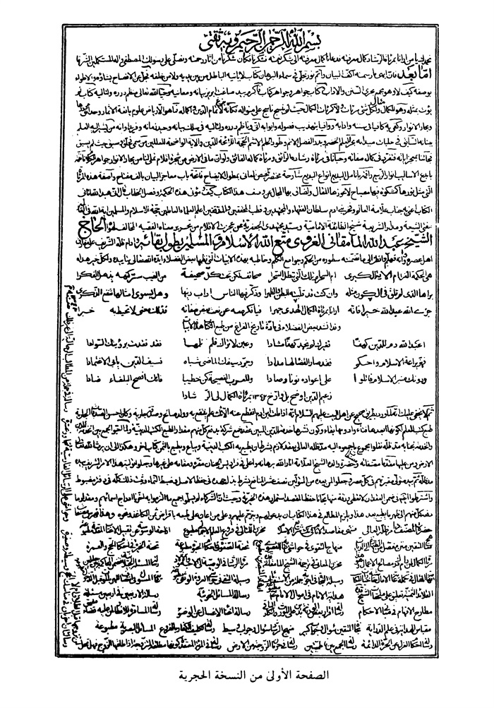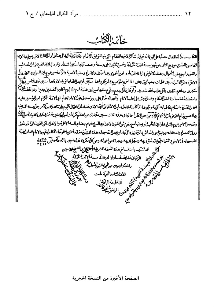 اما بعد، فان ابهى ما رسمته اكف البيان، و اتم نور تجلّى في سماء البرهان، كتاب لا ياتيه الباطل من بين يديه و لا من خلفه، فجلّ عن الافصاح بشأوه، و الاطواء بوصفه، كيف لا و هو مجمع بحري السنن و الاداب، و كتاب جواهر و جواهر كتاب، فاكرم بيد صاغت ابريز بيانه و معانيه، و حيّا اللّه تعالى منظّم درره و لآليه، كتاب لم يؤت بمثله، و هو للكمال مثال، و لكل شيء مرآة و لا ك «مرآة الكمال» حيث لم ينسج ناسج على منواله، فكأنه بزغ لإتمام الدين و إكماله، فما هو إلاّ رياض علوم يانعة الأثمار و حدائق دررها بحار الأنوار، و كفى به كافيا في سننه و آدابه، و وافيا بتهذيب فصوله و أبوابه، انّى و ناظم درره و لآليه في سلك بيانه وحيد زمانه و فريد اوانه، من يشير إليه العلم ببنانه، السابق في حلبات ميدانه، بحر العلم الخضم، و بدر الفضل الأتم، و طود الحلم الأشم، الحجة اللائحة للدين، و الآية الواضحة للعالمين، من سما فحلّق و سبق حيث لم