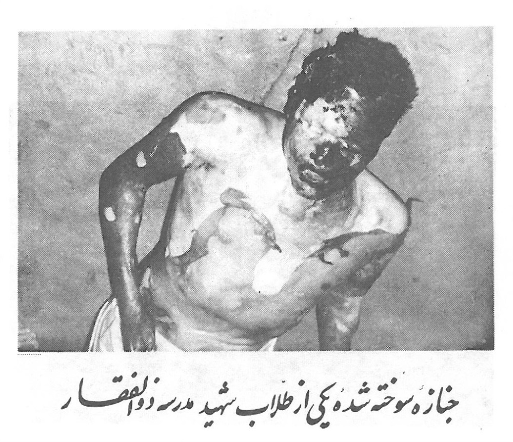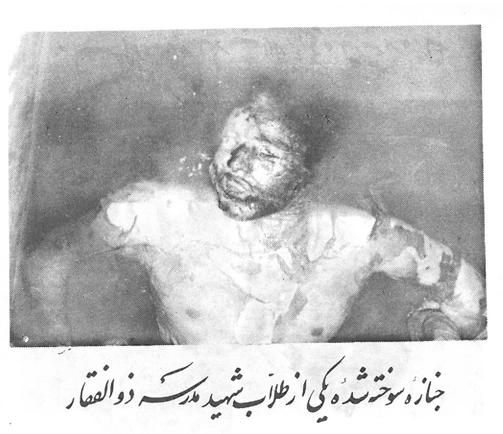 جنازه سوخته شده یکی از طلّاب شهید مدرسه ذو الفقار