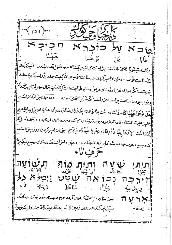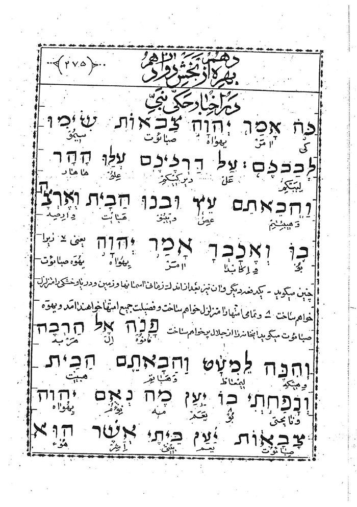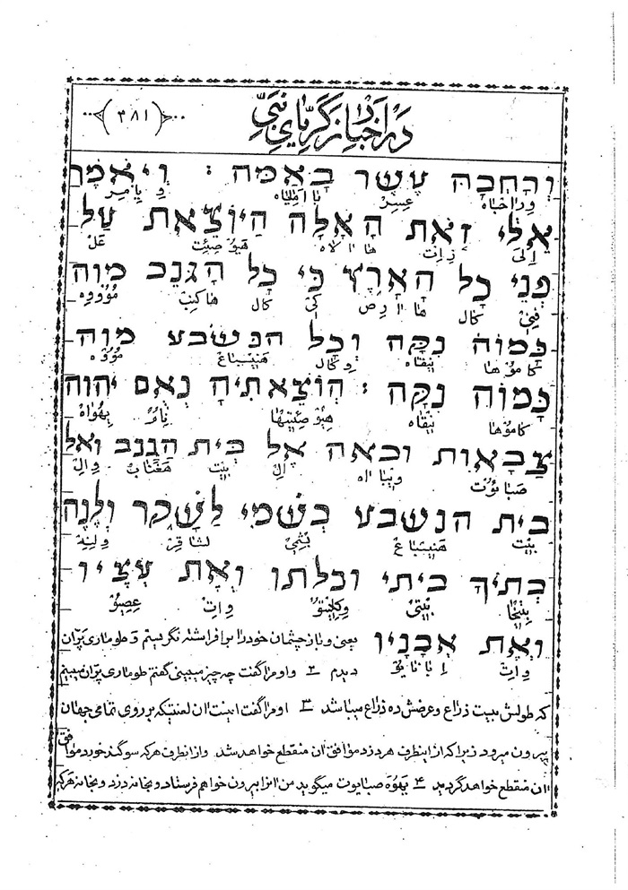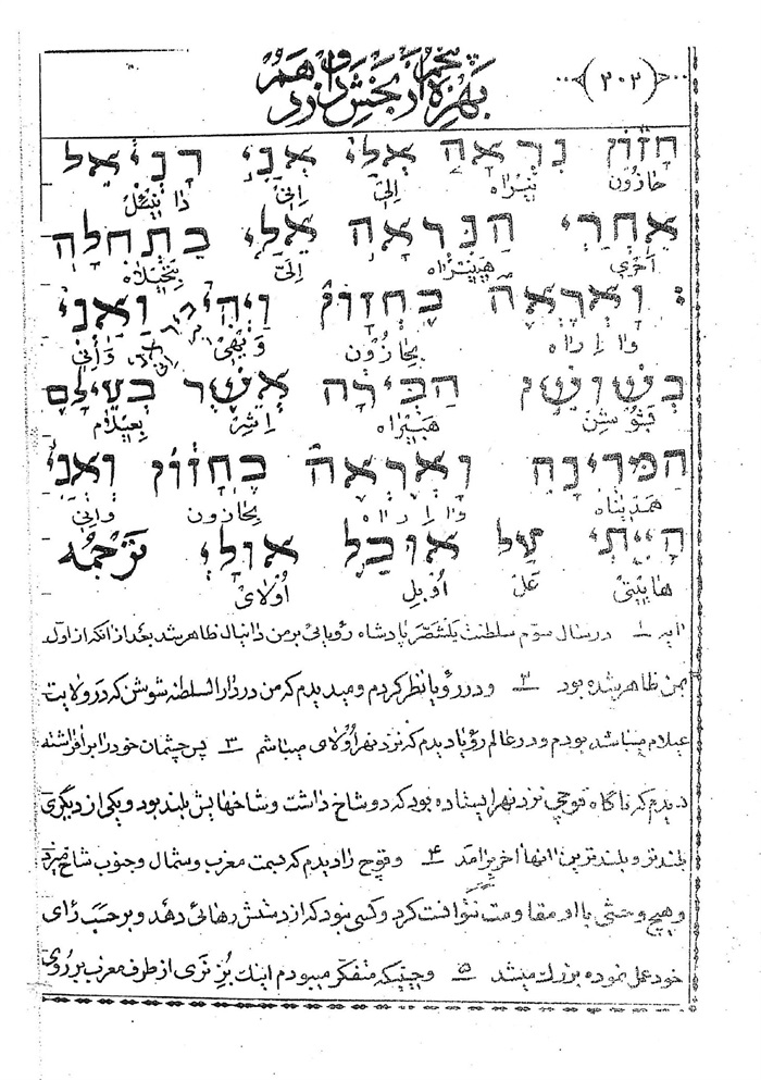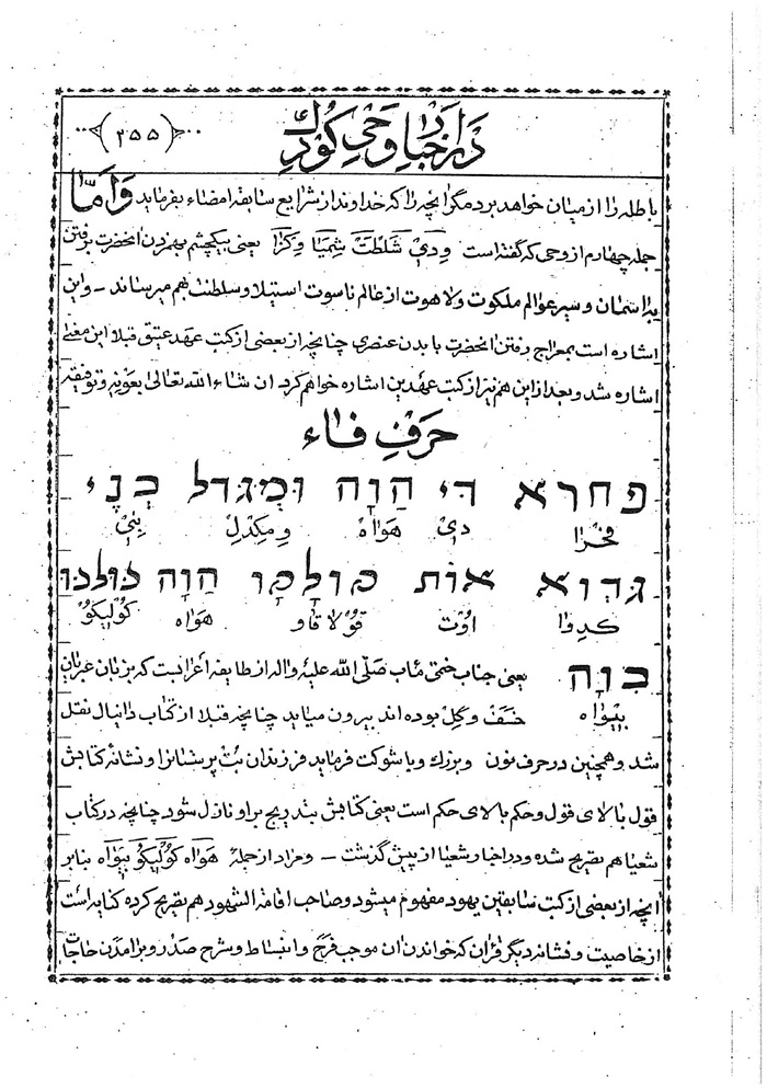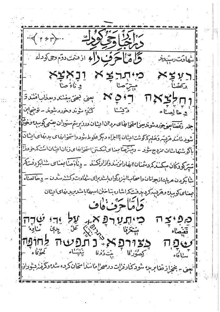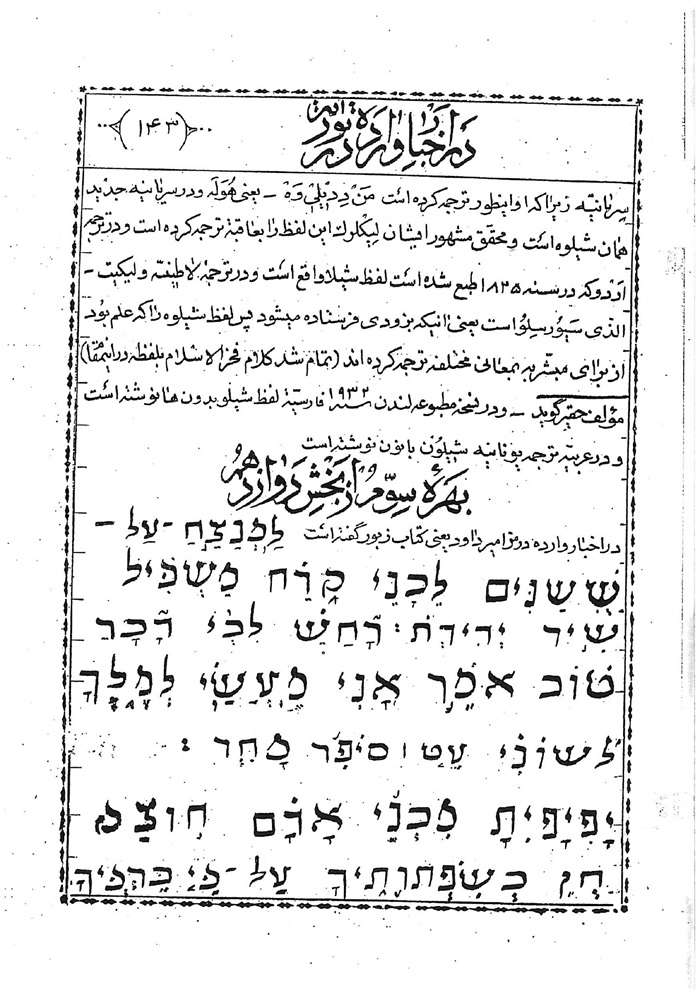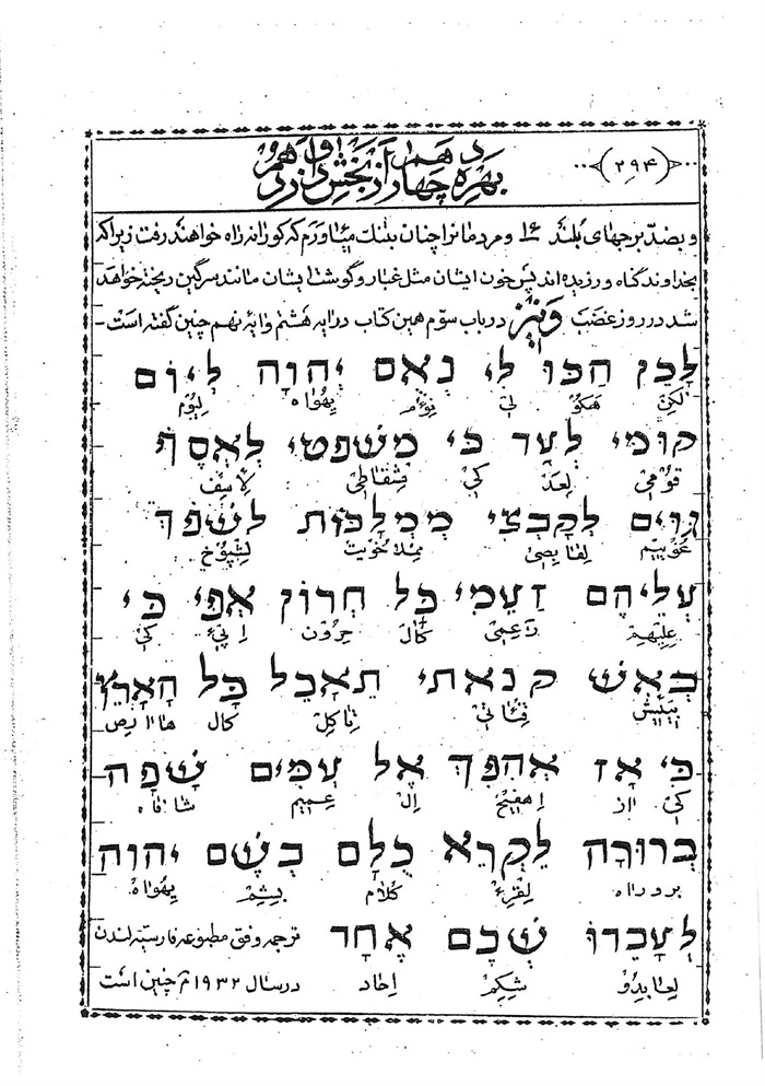 دِشقیلَلي ذِرِعَیلى بِخَقلَي وَ هَى بُوش ذِعُورَ تَلَ مِن كُلَّهُ بَرْ ذَرعِي اینَ ایُمَن دُكُور وِسَلَ بُوش كُورتِلَ مِنْ كُلَّهُ يَرقيَ كِهِ هُوَى ایلَنَ اَخ دِاَتي طَیرِی دِشمَیَ شَرِى بِپَعوَن - ترجمه 31 بار دیگر مثلی برای ایشان زده گفت ملکوت اسمان مثل دانه خردلی است که شخصی گرفته در مزرعه خویش کاشت 32 و هر چند از سایر دانه ها کوچک تر است ولی چون نموّ کند بزرگ ترین بقول است و درختی می شود چنان که مرغان هوا آمد در شاخ هایش اشیانه می گیرند مراد اینست که ملکوت اسمان راه نجاتی است که بسبب ظهور شرع محمّد صلی الله عليه و اله ظاهر شود چنان چه ان حضرت در میان قومی نشود نما کرد که در نزد اهل عالم حقیر و پست بودند زیرا که غالبًا بادیه نشین بودند و از علوم و صنایع بی بهره و محروم بودند و هم چنین از لذّت های جسمانی و بخصوص جماعت یهود بنظر حقارت و پستی بایشان می نگریستند زیرا که از اوّلاد هاجر بودند پس خدای تعالی از میان ایشان برانگیخت حضرت خاتم الانبياء صلى الله عليه و اله را و شریعت ان جناب در اوّل امر بمنزله خردلی بود بر حسب ظاهر کوچک تر از همه شریعت ها لكن نسبت بهمه اهل زمین عمومیّت داشت و در مدّت کمی نموّ و رشد عجیب کرد و برزگ ترین شریعت ها شد و شرق و غرب را احاطه کرد باندازه ای که کسانی که پیروی از هیچ شریعتی نمی کردند بشریعت ان جناب پیرو شدند و زیر سایه شریعت ان حضرت جا گرفتند