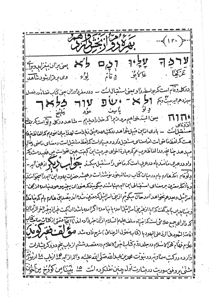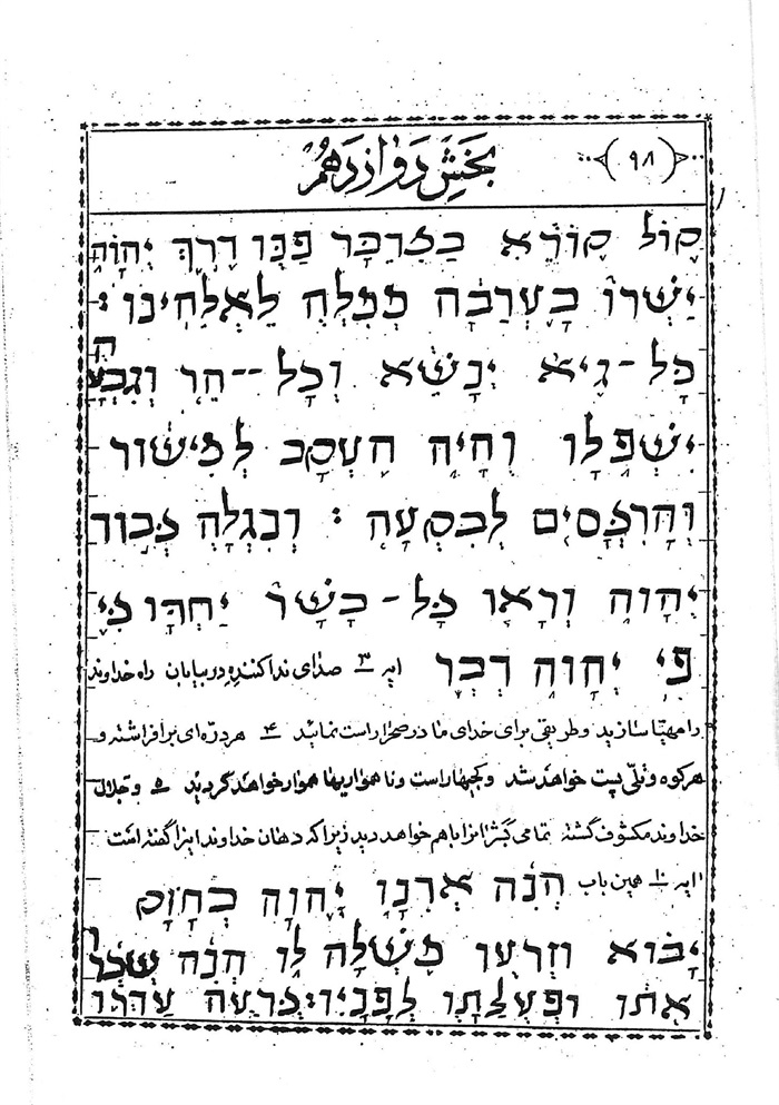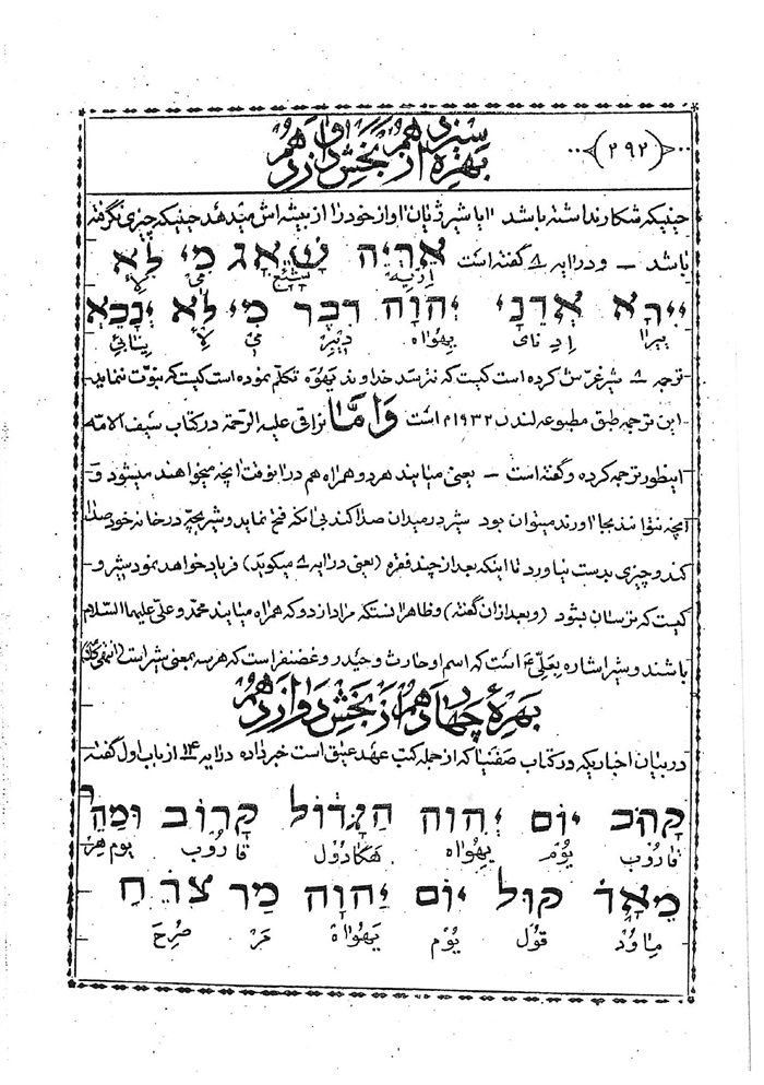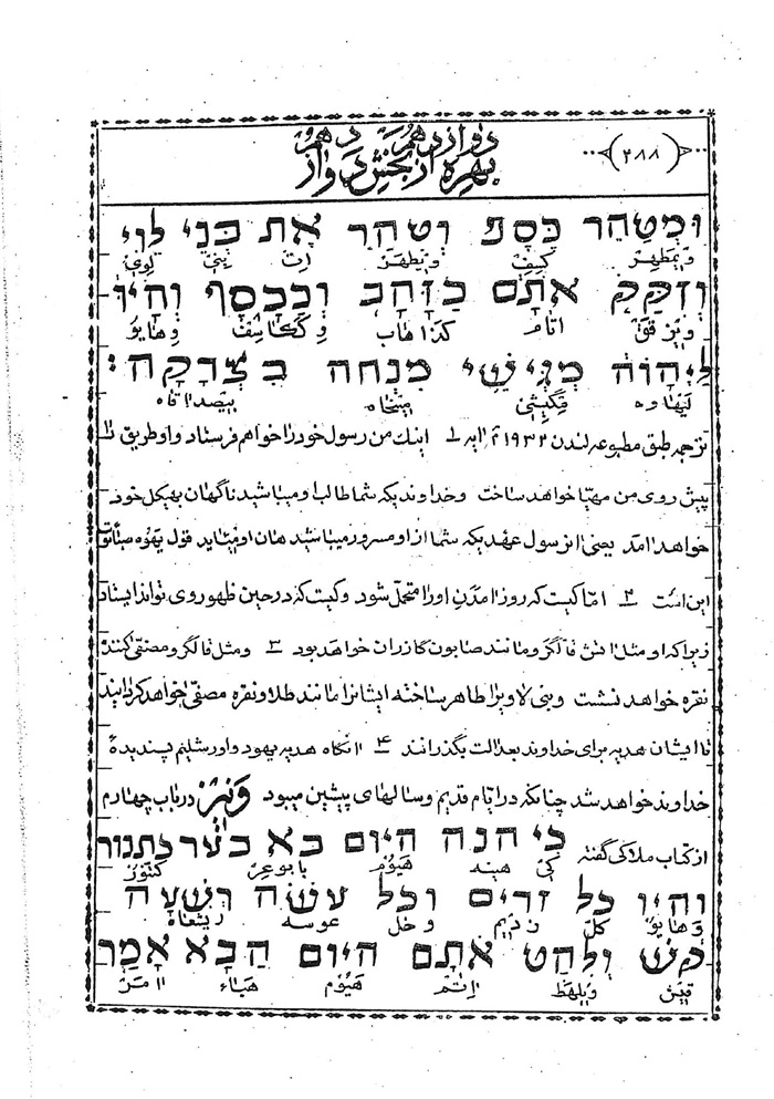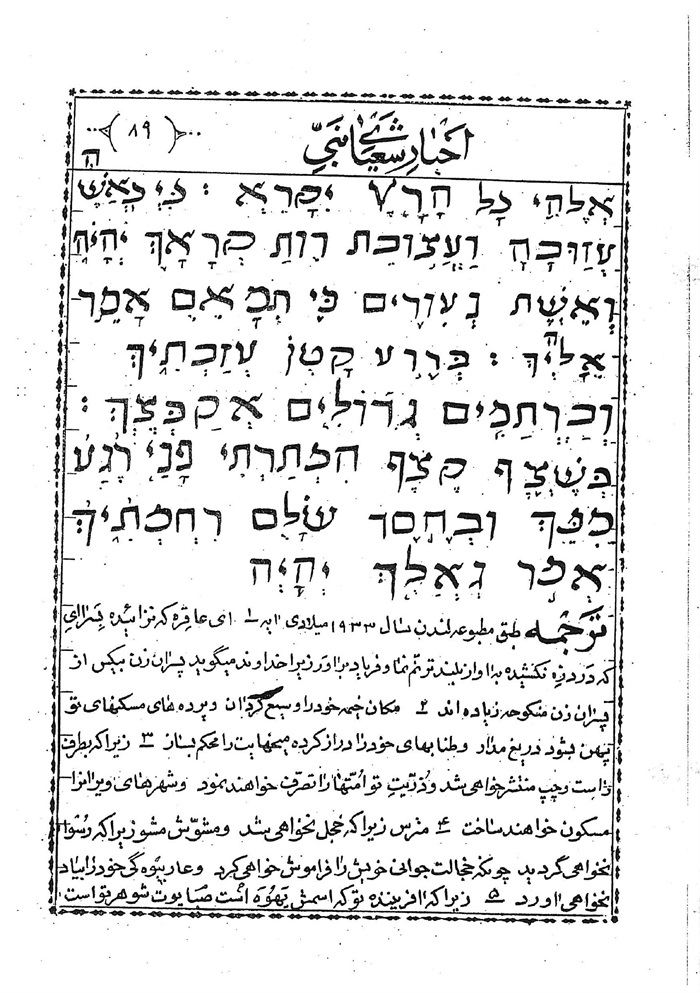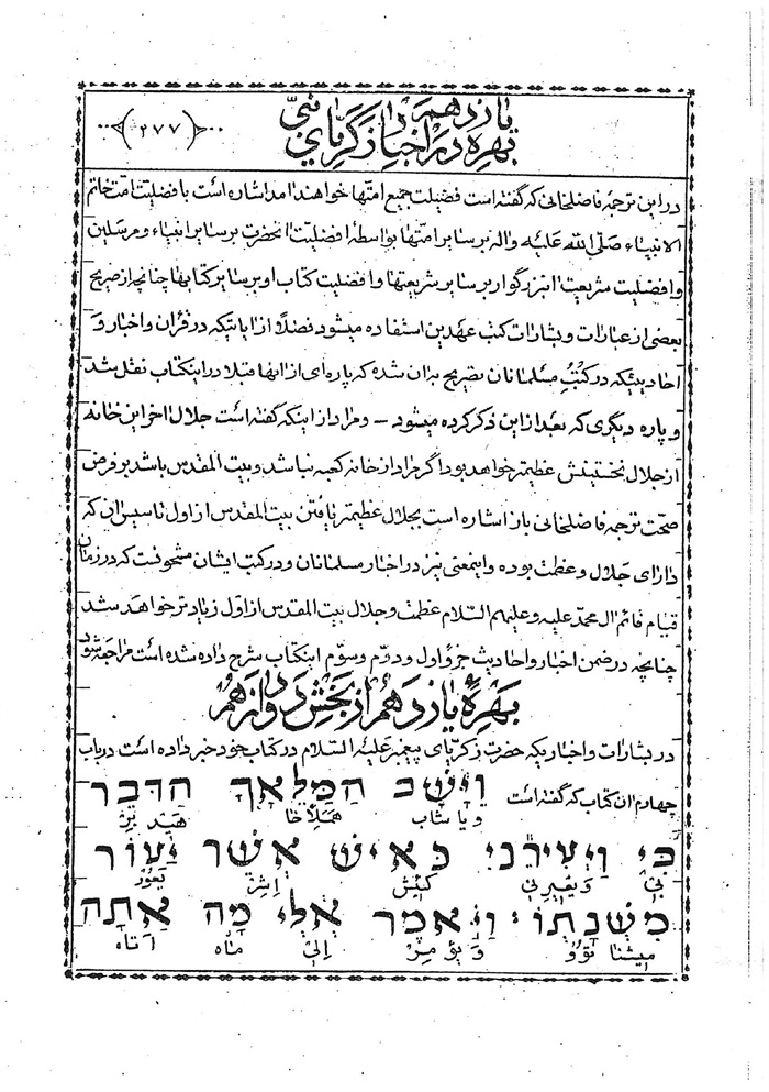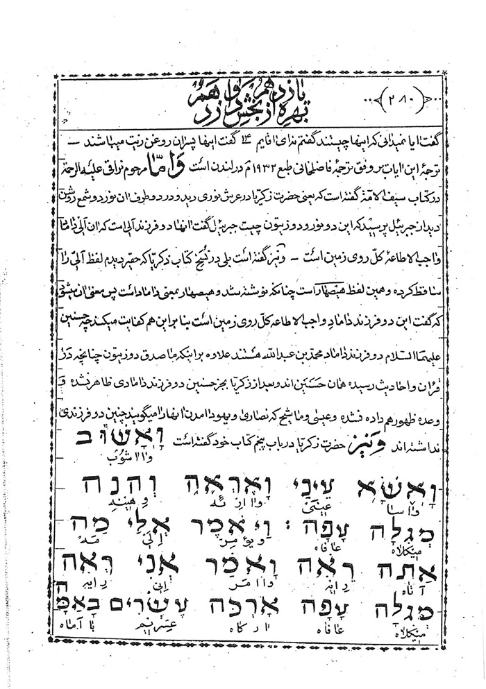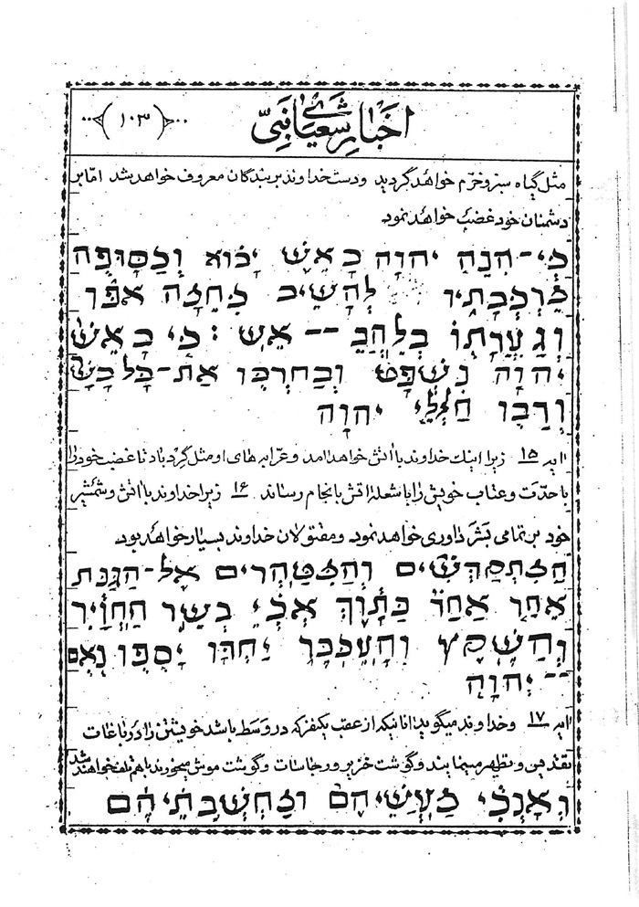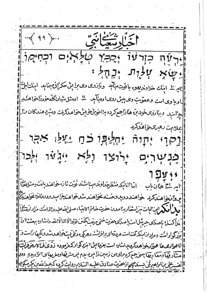 ترجمه طبق همان مطبوعه ایه 19 اینک در ان زمان بر همه آنانی که بر تو ظلم می کردند مکافات خواهم رسانید و لنگان را خواهم رهانید و رانده شدگان را جمع خواهم کرد و انانی را که عار ایشان در تمامی زمین می بود محل تسبیح و اسم خواهم گردانید 20 در ان زمان شما را در خواهم آورد و در ان زمان شما را جمع خواهم کرد زیرا خداوند می گوید حینی که اسیران شما را بنظر شما باز اوردم ان گاه شما را در میان تمامی قوم های زمین محلّ اسم و تسبیح خواهم گردانید مراد از این که در باب اوّل گفته روز عظیم خداوند نزدیکست تا ظهور حضرت خاتم الانبیاء صلى الله علیه و اله است یا روز ظهور حضرت صاحب الامر عجل الله تعالى فرجه و از قرائن سخنان بعد بیشتر دلالت بر زمان ظهور حضرت بقیة الله و ظهور دولت حقّة ال محمّد عليهم السّلام است و انتقام کشیدن ان حضرت از ظالمین و ستم کاران و از این که در باب دوّم گفته است تمامی خدایان جهان را زایل خواهد ساخت و جمیع جزائر امّت ها هر کدام از جای خود او را عبادت کنند و این که در باب سوّم گفته است که امّت ها را جمع نمایم و ممالک را فراهم اوردم تا انجائی که گفته است که در ان زمان زبان پاك به امّت ها باز خواهم داد تا جمیع ایشان اسم یهوه را بخوانند و بیک دل او را عبادت نمایند و ان چه در اواخر باب سوّم گفته همه این ها بیشتر با زمان ظهور دولت ولیّ عصر عليه السّلام موافقت دارد چنان چه از بعضی از ایات قرانیّه و اخبار و احادیث متواتره متكاثرة و مستفيضه و صحیحه و معتبرة و موثقّه جميع فرق مسلمين بخصوص فرقه امامیّه اثنی عشریّه مستفاد و فهمیده می شود