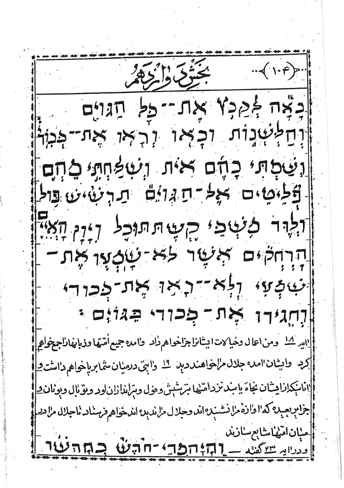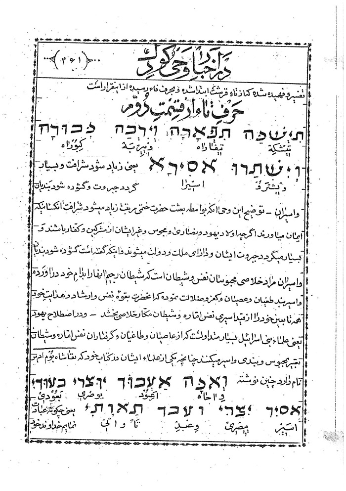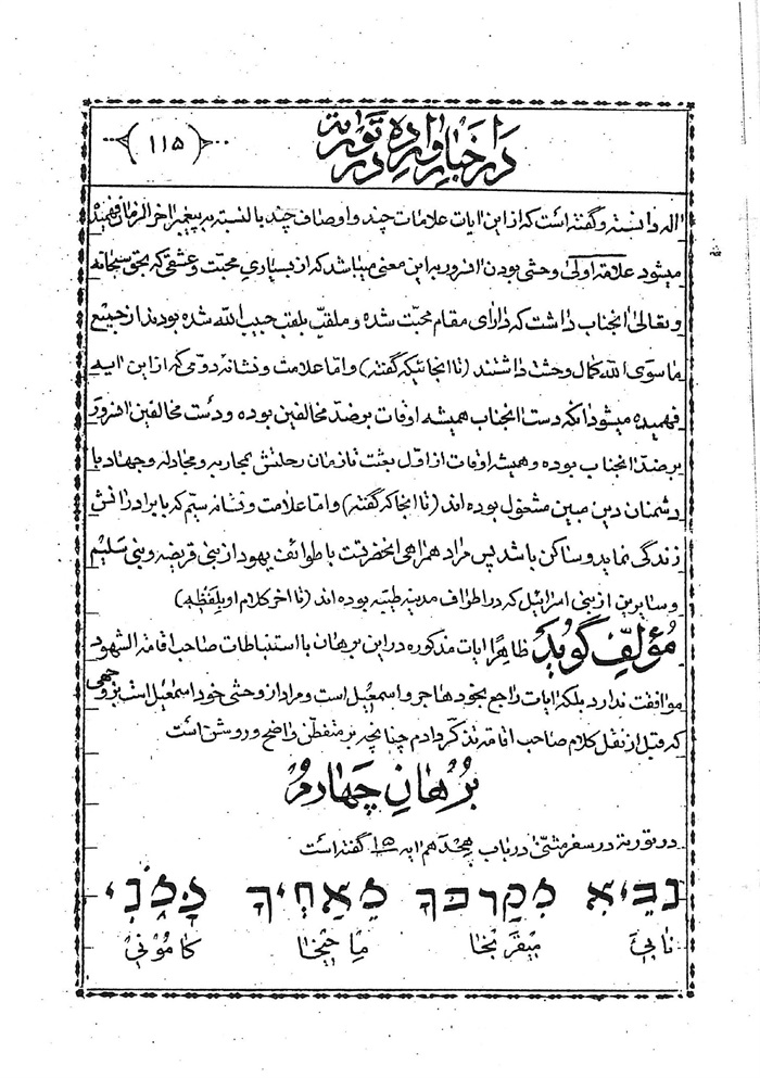 تبصره مخفی نماند که این دو ایه را با دو ایه ای که قبل از این دو ایه نوشته شد در کتاب تورته عبری طبع برلن جزو ایات باب سوّم کتاب ملاکی نوشته و در ترجمه مطبوعه لندن در سال 1932م از ایات باب چهارم نوشته برای توضیح از جهت مراجعین تذکر داده شد که هرگاه بتوریة عبری مراجعه کنند بدانند که این ایات در باب سوّم نوشته شده و ردیف شماره ان ها در ان باب 19 و 20 و 23 و 24 است