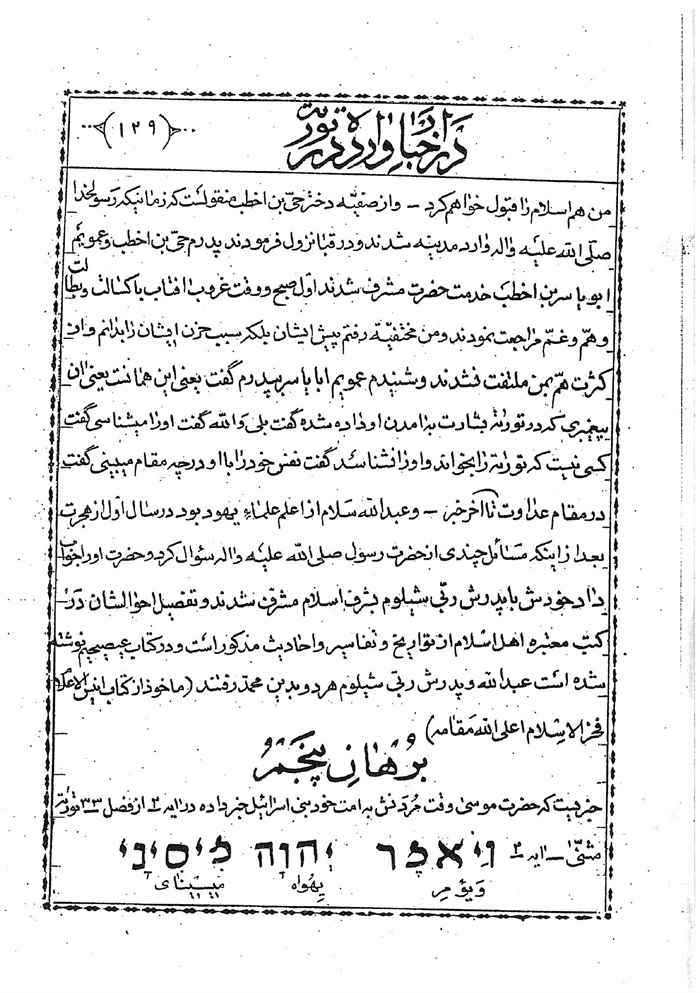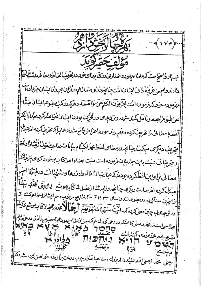 سنه 1817 و تشهدون انتم ايضا دارد و هم چنین در عربیة مطبوعة سنه 1860 و تشهدون انتم ايضاء و هم چنین در عربیّه مطبوعه سنه 1870- و در ترجمه فارسیّه مطبوعه سنه 1816 و سنه 1828و سنه 1841 و سنه 1882 و سنه 1878 و سنه 1887 و هکذا سایر تراجم که بزبان های مختلفه نوشته شده است الّا این که در بعضی از ترجمه های فارسیّه و عربیّه لفظ ايضا را از عربی و نیز را از فارسی عمداً سقط کرده اند از ان جمله در عربیّه مطبوعۀ سنه 1821 و سنه 1831 و سنه 1844 و لیکن خیانت ایشان بر ارباب بصیرت مخفی نیست خدا هدایت کند ایشان را که از این لفظ جزئی مقصود کلّی را تفویت کرده اند