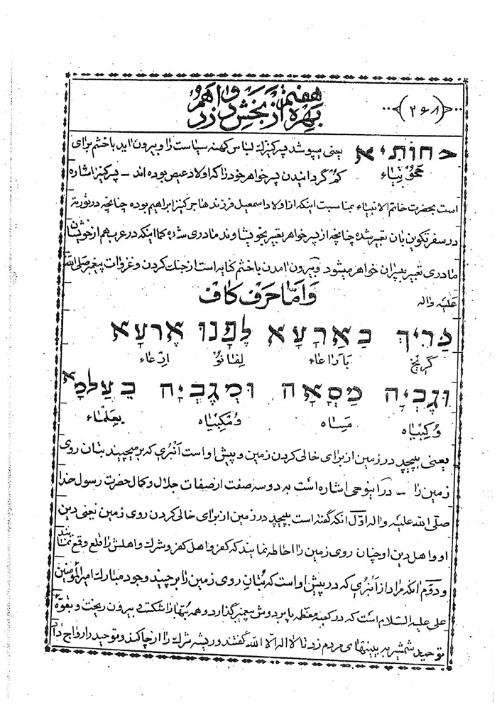 اِینِ مَخِیتپوُن ليّ پُقدَني نِطُورُ وَاَنَابِت طالِبنَ مِنْ بَبي و خِينَ پارَقليطا بِت یَبلِ لوُخُونَ دِپئش عَموُخُونَ هَل ابَدَ رُوخادِ سَرسُتوتا هَوْدِ عَالَماً لِماصِى لِقِبوَلي سَبَبَ دِلیلِي خِزْیوه دَلِيلِي دِعْیوهُ اینَ اَخَتوُنَ كِدْيا دِعْتَونَ لِه دِلِكِس لوُخُونَ بِعمارِلِي وَ بِيُوخونَ بِتَ هَوى يعنى اگر مرا دوست می دارید وصایای مرا نگاه دارید و من از پدر سوال می کنم که پارقلیطا را (يعنى اَحمَد و يا محمّد را ) بسوی شما بفرستد تا همیشه با شما باشد و او روح حقّست که جهان نمی توانند او را قبول کنند زیرا که او را نمی بینند و نمی شناسند امّا شما او را می شناسید زیرا که با شما می ماند و در شما خواهد بود و در ایه 25 از همین باب گفته اَنّیِ هُزمبلِی عَمُوخُونَ كَتْ لِکسَلَوخُونَ ِيون اینَ هَو پارَقليطا رُوخادِ تُدسَ هَوْبِتِ شادِر بَبِىّ بِشمِیَّ هَوْبِتْ مَلِپ ِلؤُخُونَ كُلِّ مِنْدِي وَ هَوَبتَ مَتخِرَ وَ خُون كُل مِندِي دِمِروِن اِلوَخُون یعنی این سخنان را با شما گفته ام وقتی که با شما بودم لیکن پارقلیطای روح حق (یعنى احمد و محمّد) که وعظ کننده بحق و داعى الی الحقّ است که پدرا او را باسم من می فرستد یعنی با تصديق من كه او مصدّق من خواهد بود و هر چیزی رابشما تعلیم خواهد داد و ان چه بشما گفته ام بیاد شما خواهد اورد مؤلّف حقیر گوید که در این ایات از انجیل یوحنّا خبر و بشارت داده به امدن پارقلیطا که مراد محمّد و احمد باشد که پنده دهنده و خواننده بسوی حقّ و مصدّق بعیسی باشد و تعلیم دهنده باشد بمردمان هر چیزی را و لیکن چون علماء مسیحی