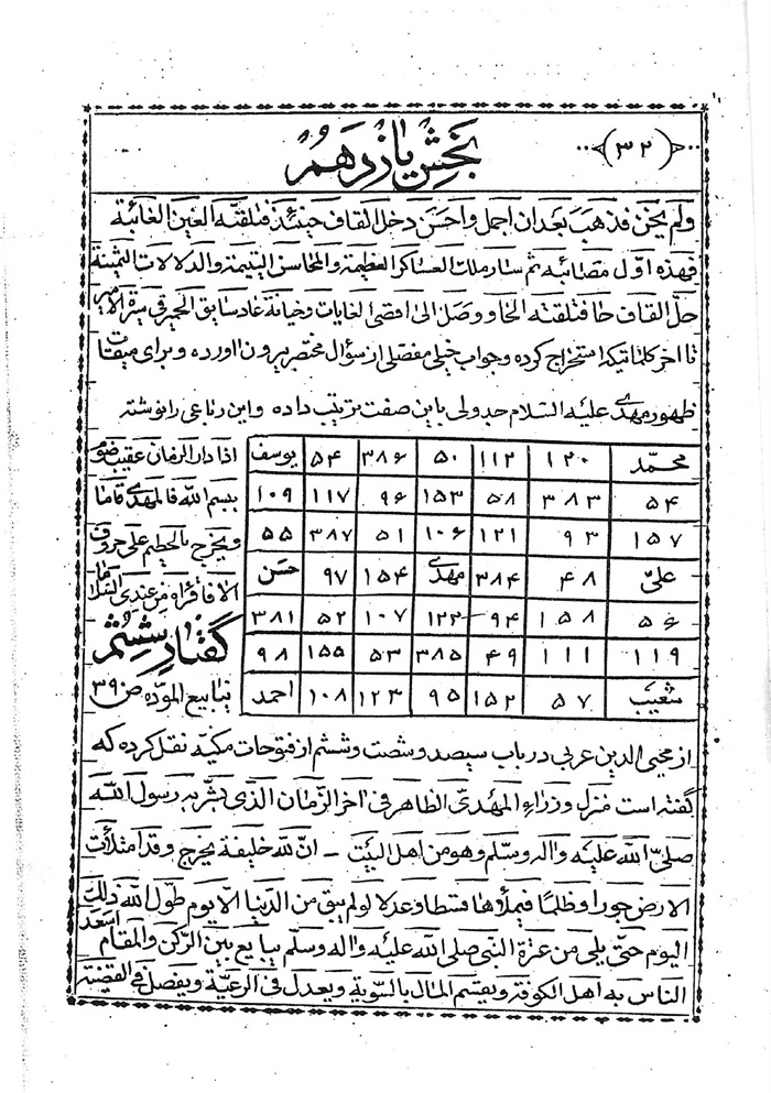 در اقوال كهنه و منجّمين و علماء علم حروف و جَفَر و بعضی از مكاشفات اهل كشف و شهود