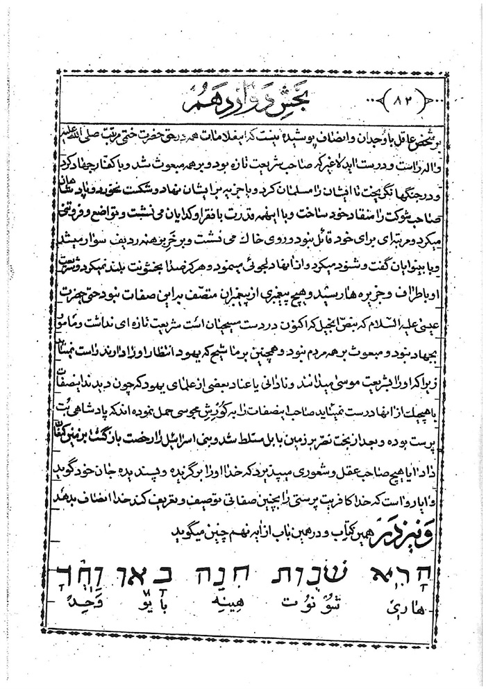 و اهل کتاب از پیشینیان و پسینیان ایشان عادت شان بر تحریف و تبدیل کلمات بوده و هست و بعلاوه اسم را هر چند علم باشد در ترجمه تبدیل می کنند و اسم ظاهر را بضمیر مبدّل می نمایند و هم چنین در اسم اشاره چنان چه مرحوم فخر الاسلام در جلدين كتاب انیس الاعلام مفصّلا با شواهد بسيار این معنی را مدلّل داشته و تحقیق عمیقی در این باب نموده و بعلاوه ببرهان قاطع و دلیل ساطع ثابت کرده که جناب عیسی علیه السّلام بلغت عبری تکلّم می فرموده نه بیونانی و سریانی و غیر این دو زیرا که پدر ساختگی او و هم چنین علیا جناب والده ماجده او هر دو عبرانی بودند و در میان عرانی ها نشو و نما کرده بودند و موعظه کردن و تبلیغات آن جناب بلغت عبری بوده و اهل کتاب نیز معترف باین معنی بوده و می باشند چنان چه می گویند که بعد از بردار زدن و صعود عیسى تا مدّتی روح القدس معاني را بدل های حواریيّن القاء می نمود و ایشان را مخیّر نمود که هر یک از ایشان در میان هر قومی که هستند انجیل را بلغت ایشان تمام کنند پس متّی انجیل خود را بزبان عبری که لغت او و قومش بود نوشت و سایر اناجیل متداوّله را بزبان یونانی نوشتند پس باید دانست که جای هیچ گونه شک و تردیدی نیست که انجیل چهارم که انجیل یوحنّا باشد اسم پیغمبری را که در انجیل بشارت به آمدن او داده شده بزبان یونانی ترجمه نموده است بر حسب عادتی که داشته و اصل لفظی که جناب عیسی به ان تکلّم نموده از میان رفته و در میان نصاری و مسیحیّن اثری از ان باقی نماند و از ان لفظ بی خبرند وليكن برنابا در انجیل خود ان لفظ را به محمّد با لقب نبوّت تصریح کرده چنان چه در ترجمه انجیل برنابا که در عصر متاخر مرحوم حیدر قلی خان سردار کابلی نزیل کرمان شاه اعلى الله تربته نوشته و طبع شده تصریح باسم محمّد رسول الله نموده و هم چنین مرحوم فخرالاسلام در جلد دوّم انیس الاعلام در باب ذکر بشارات صریحه بنبوّت محمّدیّه در بشارت بیست و سوّم از قسیس سیل در مقدّمه ترجمه خود که بر قران مجید نوشته