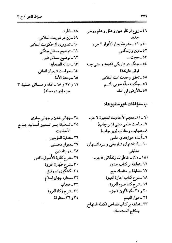 و لسماحته دام بقاؤه كتب كثيرة صنّفها طيلة حياته العلمية الزاخرة، منها هذا الكتاب الثمين، فقد كتبه في النّجف الأشرف سنة 1340 ه -. ش تقريباً شارحاً فيه الأصول العقائديّة في أربعة أجزاء، و هذا هو الجزء الثّالث منه، الّذي يبحث حول النبوّة و الإمامة (على انّهما ركنان أساسيّان من أركان الدّين. بأقوام الطرق لمعرفة الله و المعاد و المعارف الإسلامية قاطبة) باستدلال علمي و فلسفي دقيق، مدعومة بشواهد من القرآن و السنة و ربّما استدلّ بأقوال علماء اخواننا السنّة و كتبهم المعتبرة و... و بقى الجزء الرّابع في المعاد نسأل الله تعالى أن يوفّق المصنّف لاكماله بعونه تعالى.
