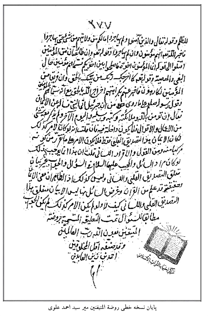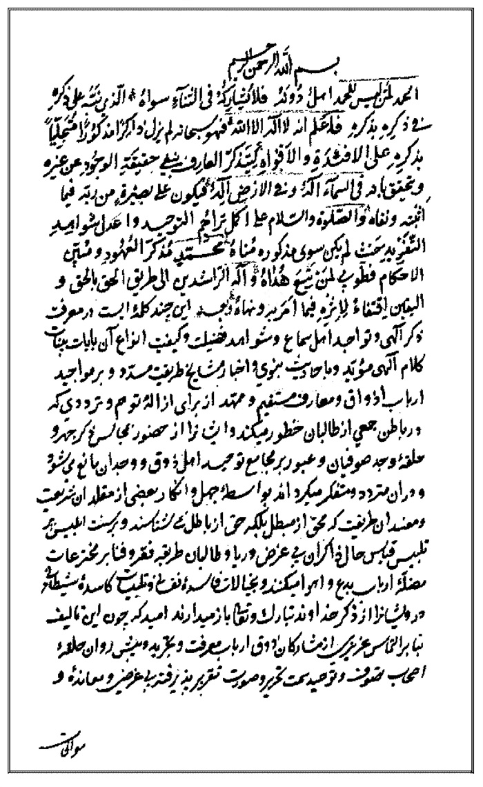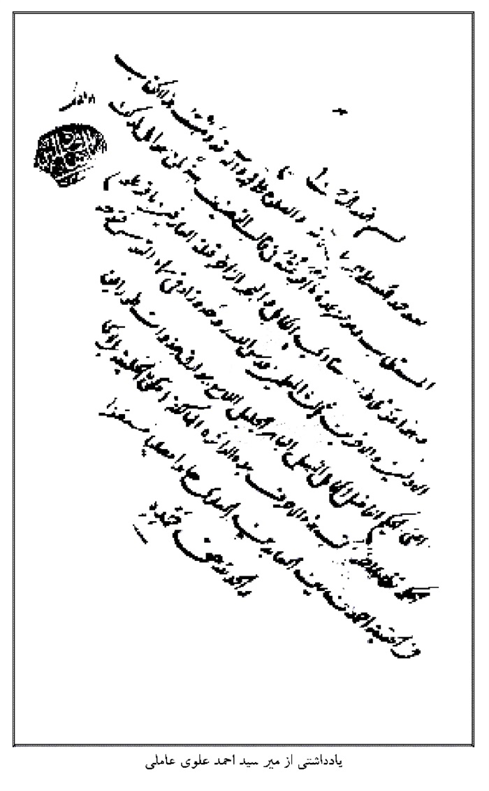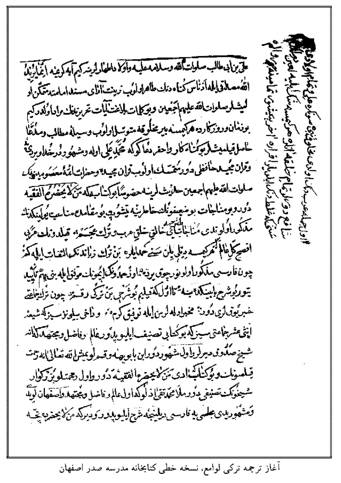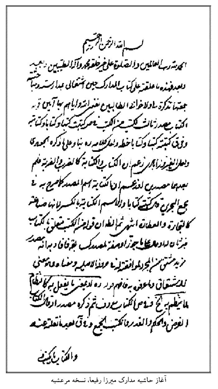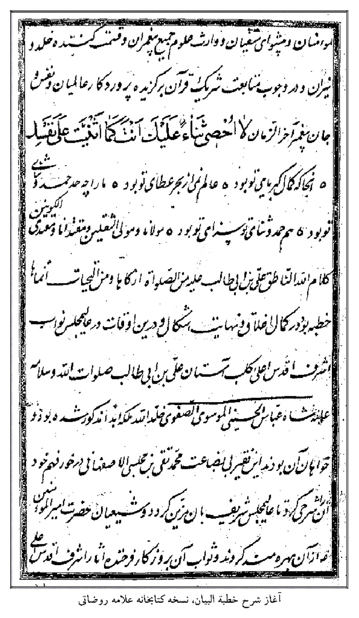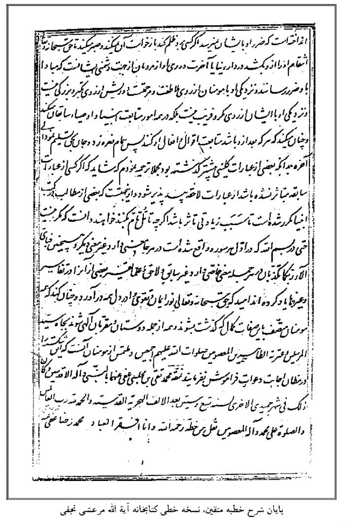 فليرو الولد الأعزّ، أدام الله تبارك وتعالي تأييداته وتوفيقاته، هذه الكتب وغيرها ممّا لم أذكره اختصاراً، من الكتب التي صنّف في الإسلام، سيّما كتب التفاسير والأحاديث عنّي. وآخذ عليه ما أخذ عليّ من الاحتياط في الرواية والفتوي،
