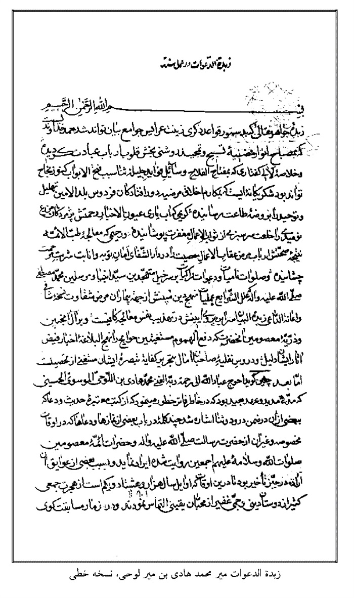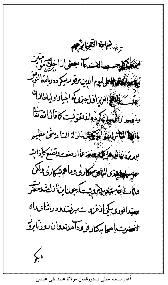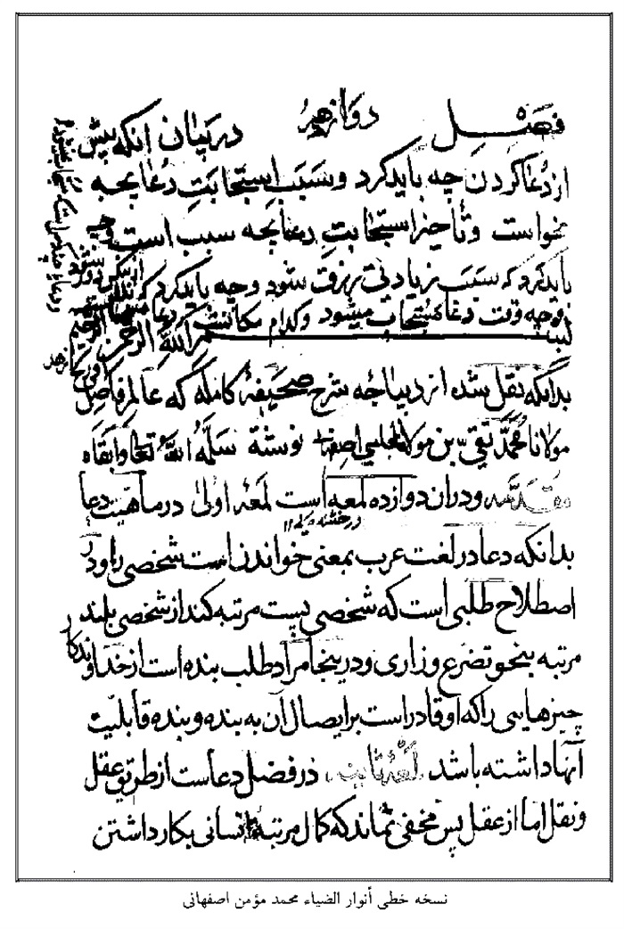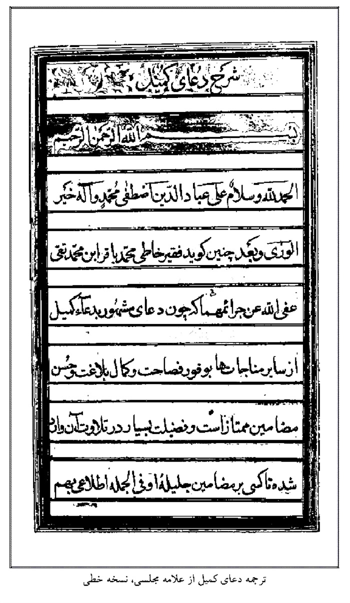 دعايى منسوب به علامه مجلسى به خط ميرزا احمد نيريزى