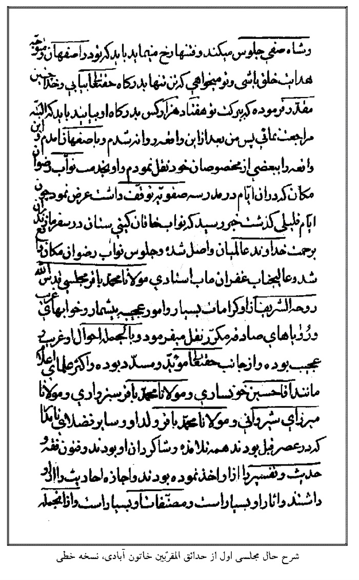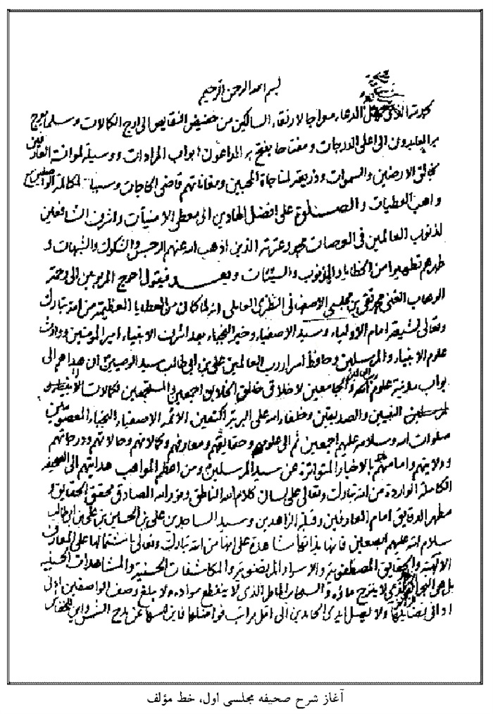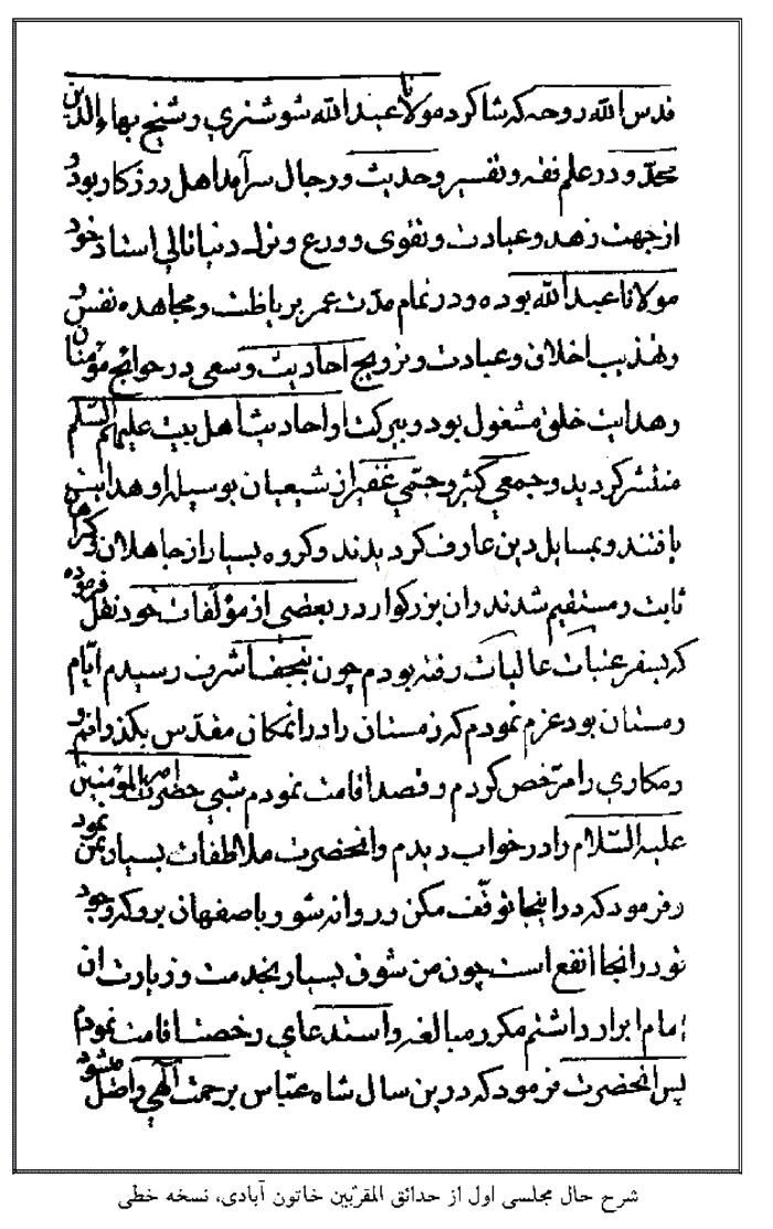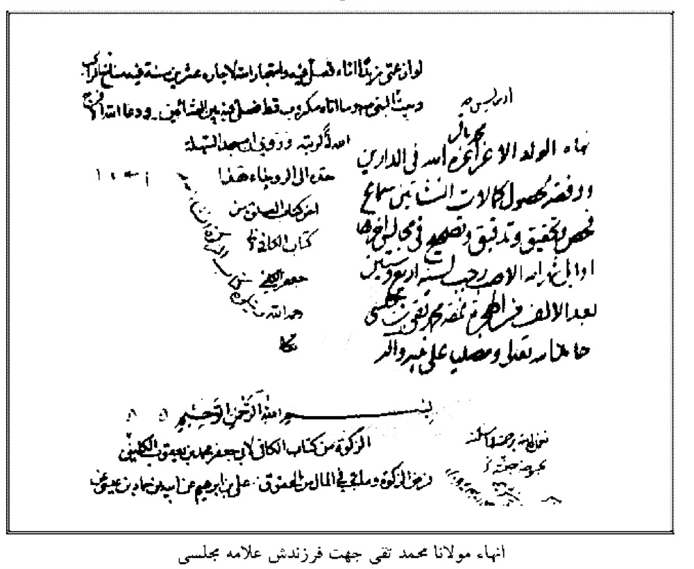 «اما اولاد امجاد علامه مغفور، افضل المتقدّمين و المتأخّرين، المولى محمد باقر المجلسى، قدّس الله روحه، كه به سر حدّ كمال رسيده اند چهار ذكور و پنج اناث: