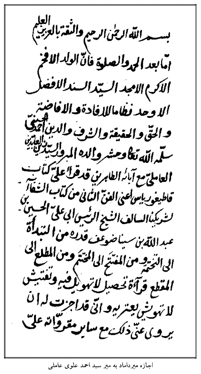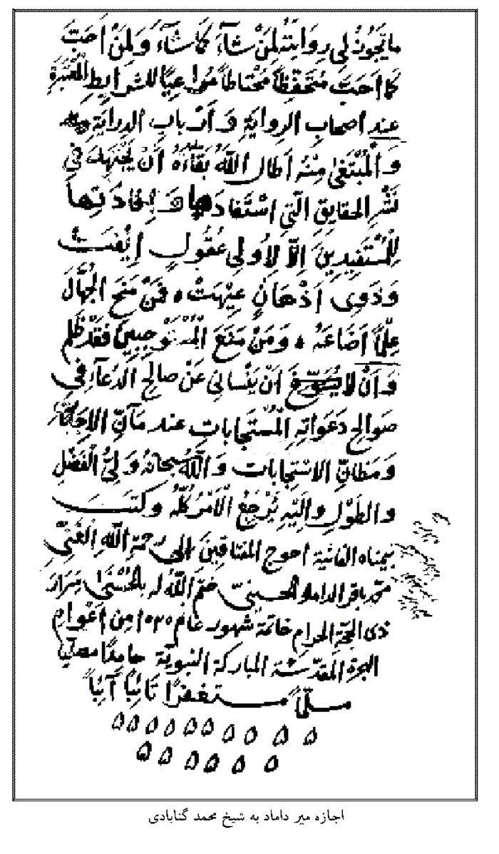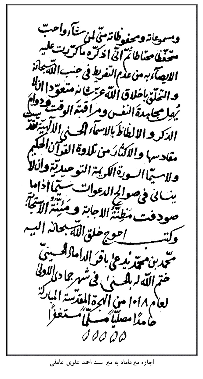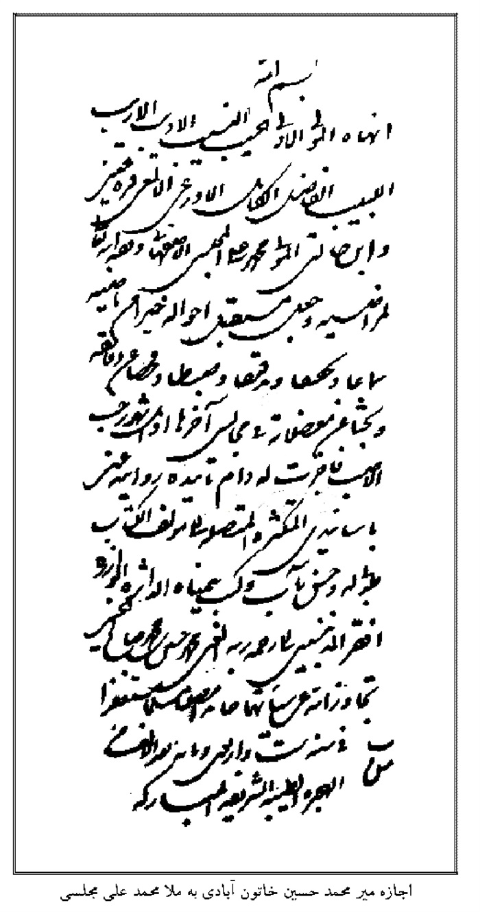 اجازه مير محمد حسين خاتون آبادى به ملا محمد على مجلسى