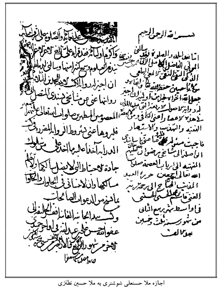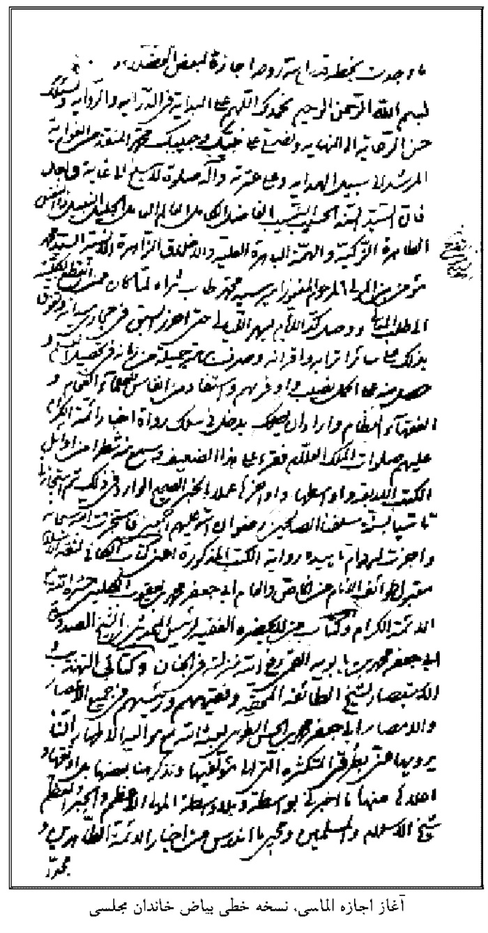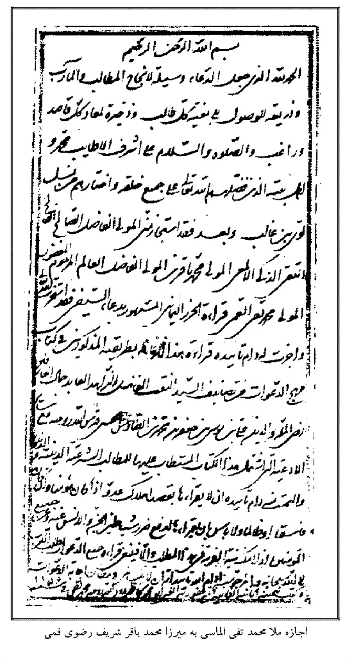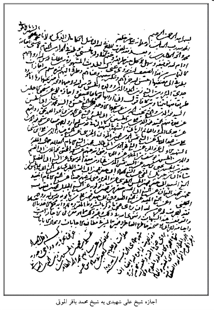 اجازه مير محمد حسين خاتون آبادى به ملا محمد على مجلسى