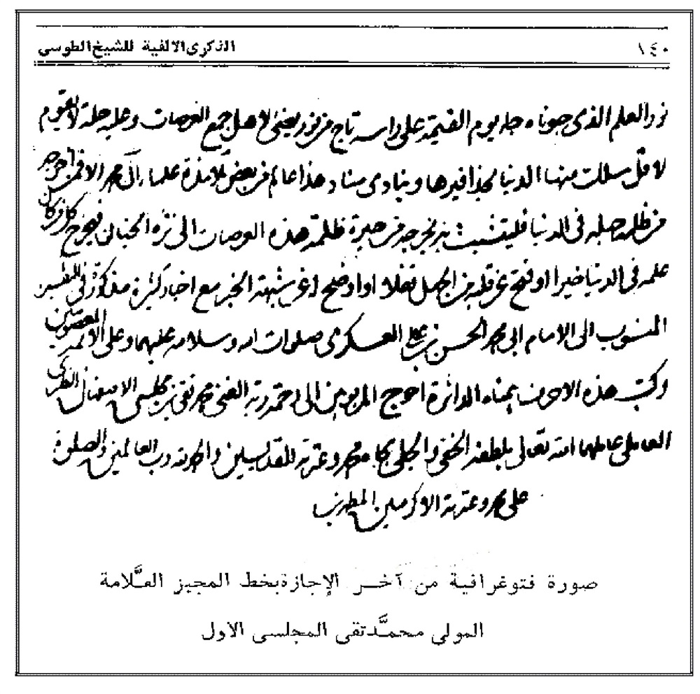 اجازه سيد شولستانى به مولانا محمد تقى مجلسى: 147