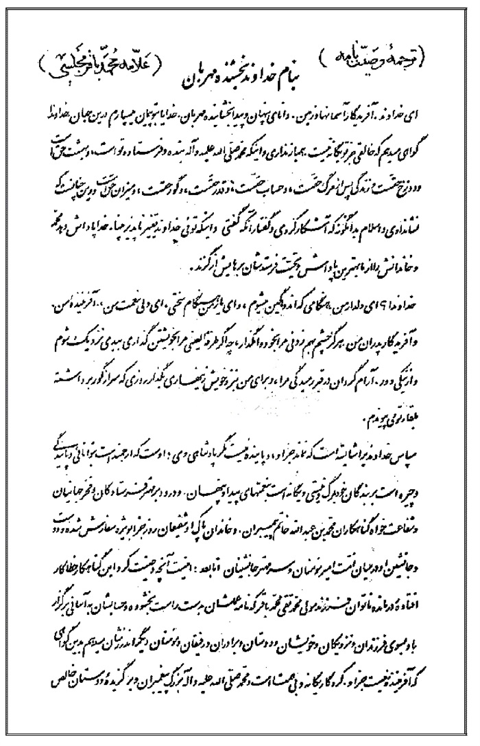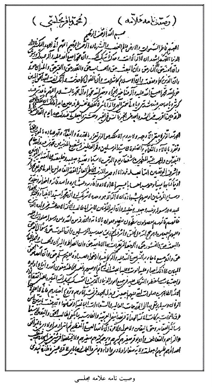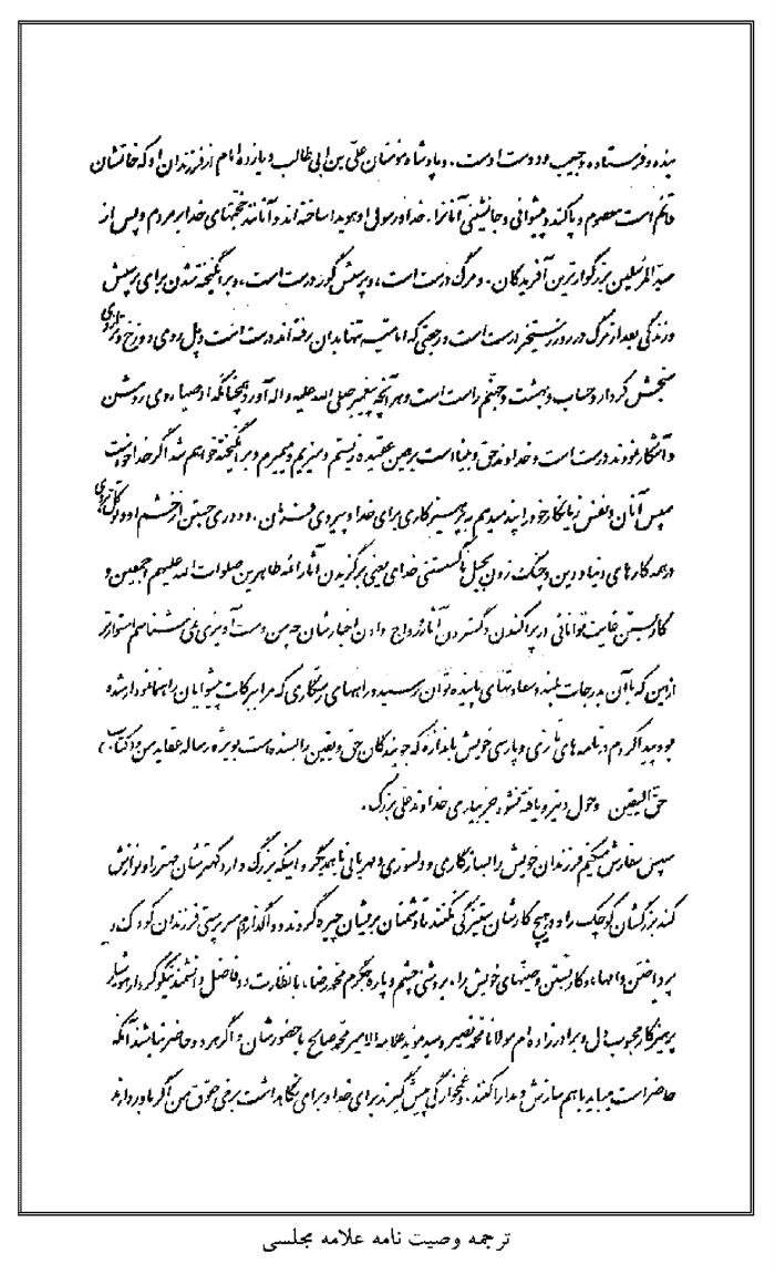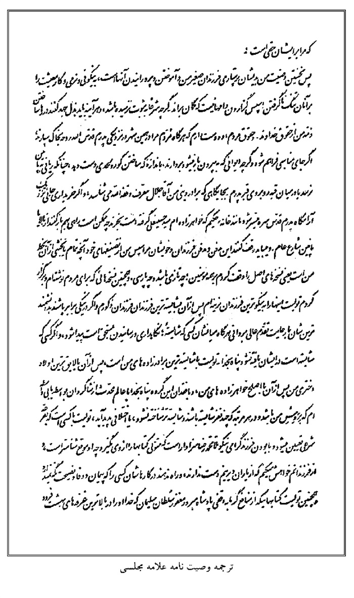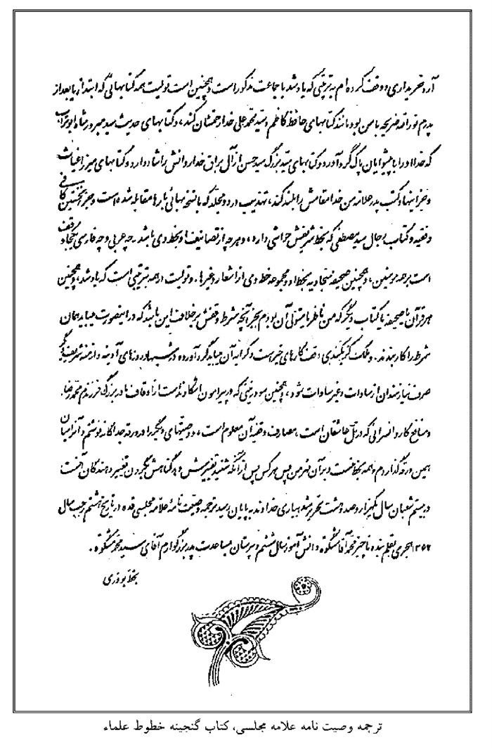 ترجمه وصيت نامه علامه مجلسى، كتاب گنجينه خطوط علماء
