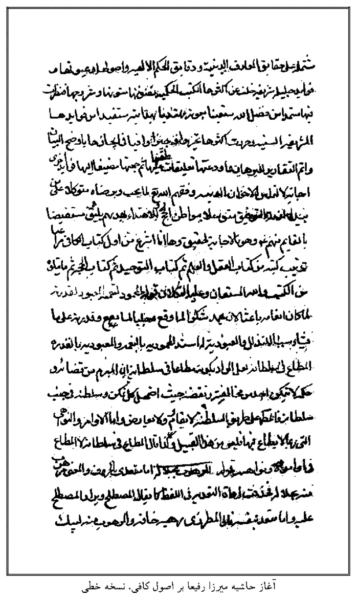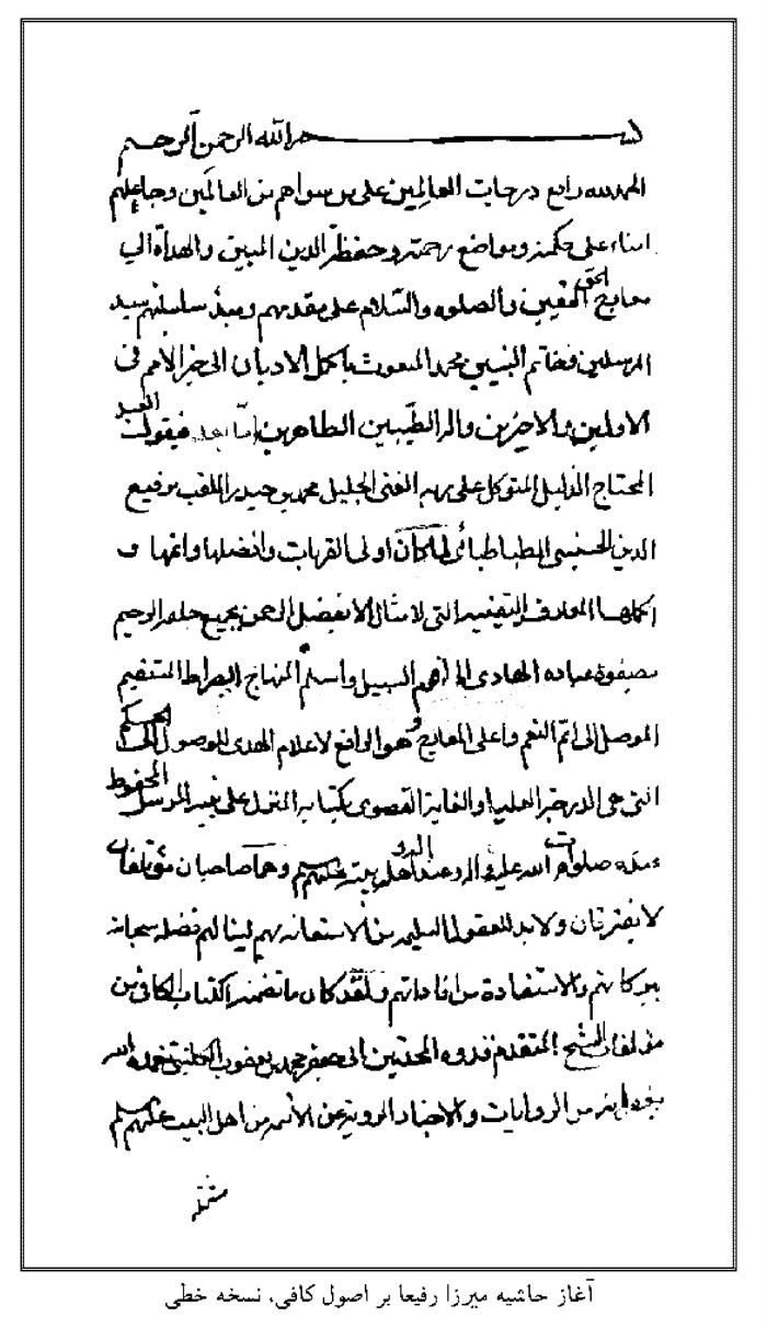 [1] پسر مزبور، فاضل مغفور، ميرزا محمد صادق، كه در حيات آخوند وفات يافته، و آخوند مرحوم، شرحين كافى و تهذيب را حسب الخواهش او تأليف نموده اند.