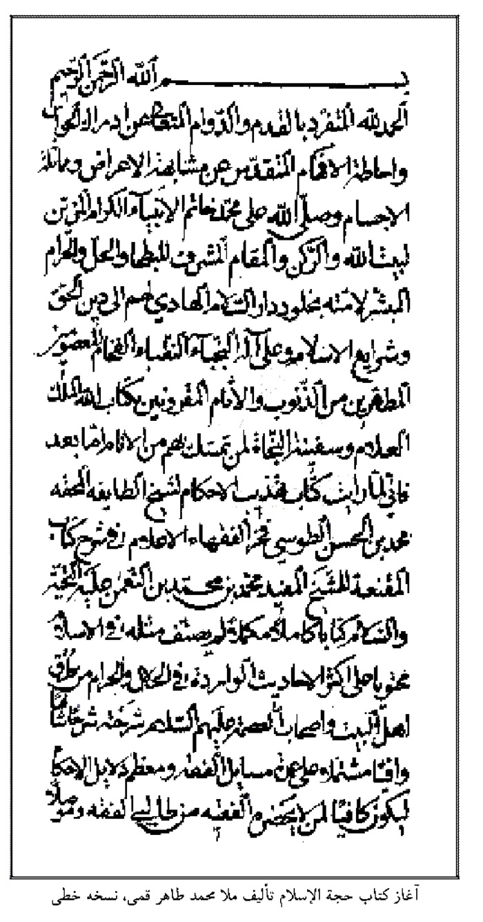 گزيده آراء مولانا محمد تقى در مناظره با ملا محمد طاهر قمى: 363