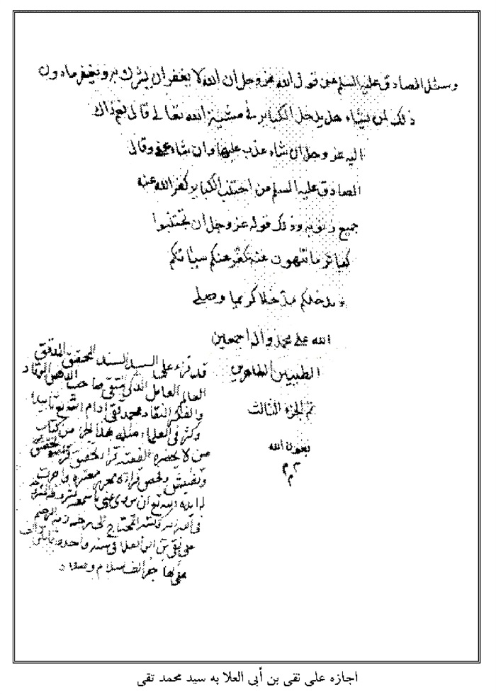 اجازه ملا حسنعلى به مولانا محمد تقى مجلسى: 113